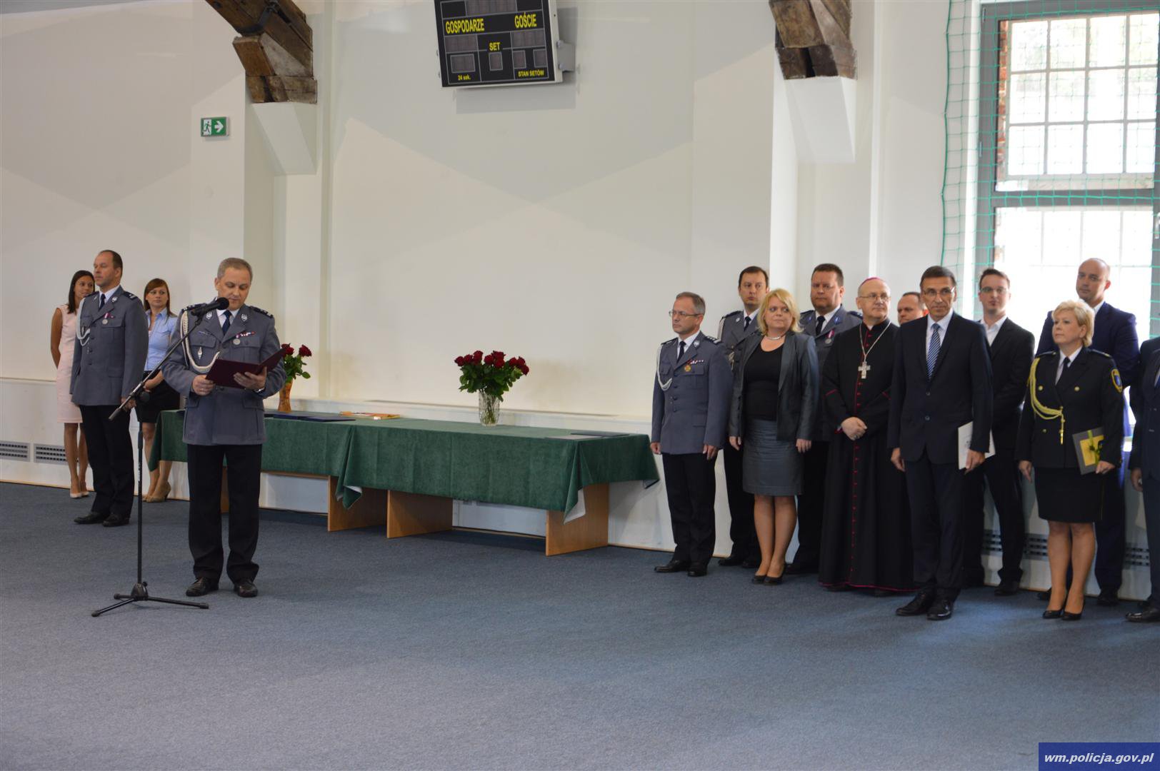 Główna część uroczystości odbyła się w sali na ul. Pstrowskiego. Po uroczystym wprowadzeniu sztandaru, Komendant Miejski Policji w Olszynie mł. insp. Mieczysław Wójcik przywitał gości oraz w mieniu własnym oraz kierownictwa Komendy Miejskiej Policji w Olsztynie, złożył wyróżnionym serdeczne życzenia: