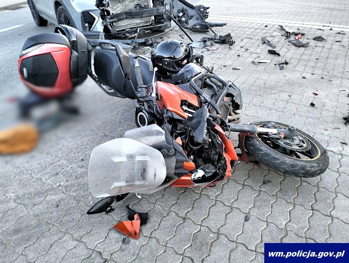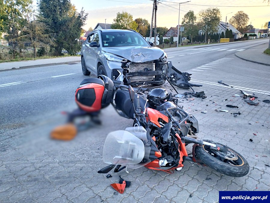 W czwartek rano (17.10.2024) kilka minut przed godziną 7:00, 35-latka kierująca hyundaiem podczas wykonywania manewru skrętu w lewo nie upewniła się co do możliwości wykonania manewru i doprowadziła do czołowego zderzenia z kierującym motocyklem jadącym z przeciwnego kierunku ruchu. Mężczyzna z obrażeniami ciała został przetransportowany do szpitala. Trwa wyjaśnianie wszelkich okoliczności tego zdarzenia.