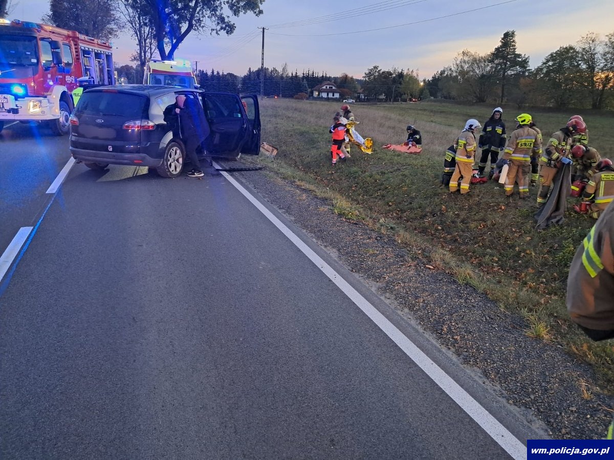 W niedzielę (20.10.2024 r.) około godziny 17:00 funkcjonariusze mrągowskiej komendy pracowali na miejscu wypadku drogowego, na odcinku drogi krajowej numer k59, trasa Mrągowo – Piecki. Z ustaleń policjantów będących na miejscu zdarzenia wynika, że 35- letnia mieszkanka powiatu mrągowskiego, kierując pojazdem marki Skoda, jadąc w kierunku Mrągowa, zjechała na przeciwległy pas jezdni, doprowadzając do zderzenia czołowego z prawidłowo jadącym pojazdem marki Ford, którym kierowała 44- letnia kobieta. Pojazdem marki Skoda, oprócz kierującej, podróżowała dwójka dzieci. Kierująca wraz z dziećmi zostali przetransportowani do szpitala. W jadącym w kierunku miejscowości Piecki, pojeździe marki Ford, znajdowało się pięć osób, z którego kierująca oraz jeden pasażer zostali przewiezieni do szpitala. W zdarzeniu drogowym pięć osób musiało skorzystać z pomocy medycznej. Jak się okazało obrażenia nie były poważne. Pozostałym pasażerom, na szczęście nic się nie stało. Obie kierujące były trzeźwe. Mrągowscy policjanci przez kilka godzin pracowali na miejscu zdarzenia. Droga przez dłuższy czas, w miejscu zdarzenia była zablokowana. 35- letnią kierującą pojazdem marki Skoda, policjanci ukarali mandatem karnym oraz zatrzymali dokument prawa jazdy, za spowodowanie kolizji drogowej.