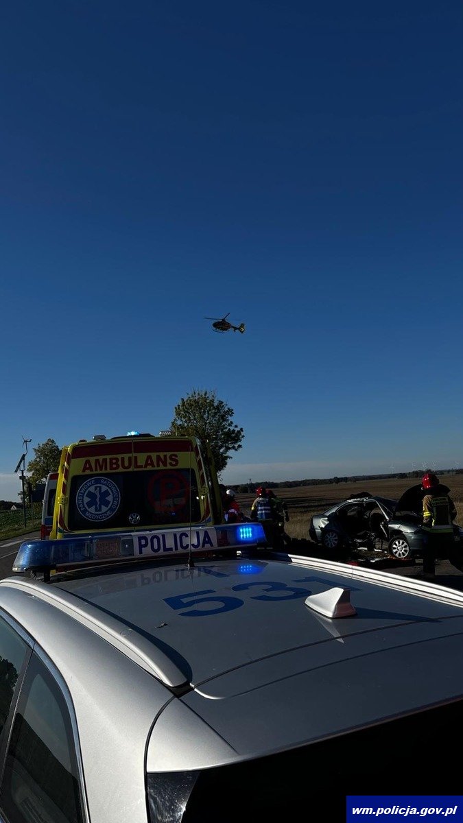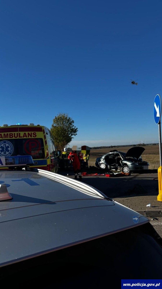 Tego samego dnia, czyli w sobotę (19.10.2024 r.) kilka minut po godz. 13:00 oficer dyżurny kętrzyńskich policjantów został poinformowany o zdarzeniu drogowym z udziałem dwóch pojazdów. Z przekazanych informacji wynikało, że do zdarzenia doszło w rejonie skrzyżowania dróg wojewódzkich Kętrzyn-Bartoszyce, Reszel-Korsze i są osoby poszkodowane, które wymagają pomocy medycznej. Na wskazaną trasę natychmiast zostały wysłane służby ratunkowe. Będący na miejscu policjanci ustalili, że w rejonie skrzyżowania drogi wojewódzkiej W590 z drogą W592 kierujący mitsubishi 21-latek, jadąc od strony m. Reszel nie ustąpił pierwszeństwa przejazdu prawidłowo jadącej toyocie, którą kierował 41-latek. Doszło do zderzenia pojazdów, w których łącznie podróżowało 7 osób, z czego sześcioro odniosło obrażenia i zostali przewiezieni do szpitali. Na miejscu lądowały także dwa lotnicze pogotowia ratunkowe. Kierujący pojazdami byli trzeźwi. Droga była całkowicie zablokowana. Funkcjonariusze kierowali na objazdy.