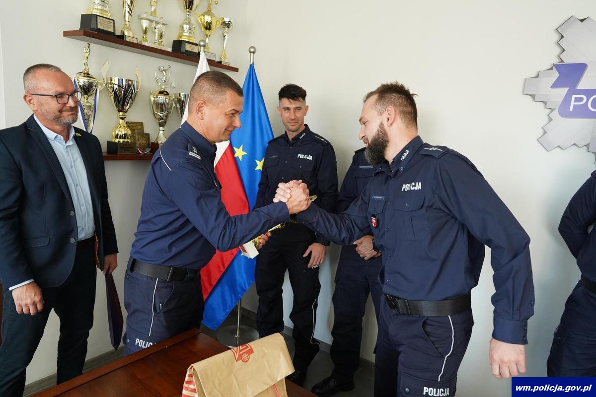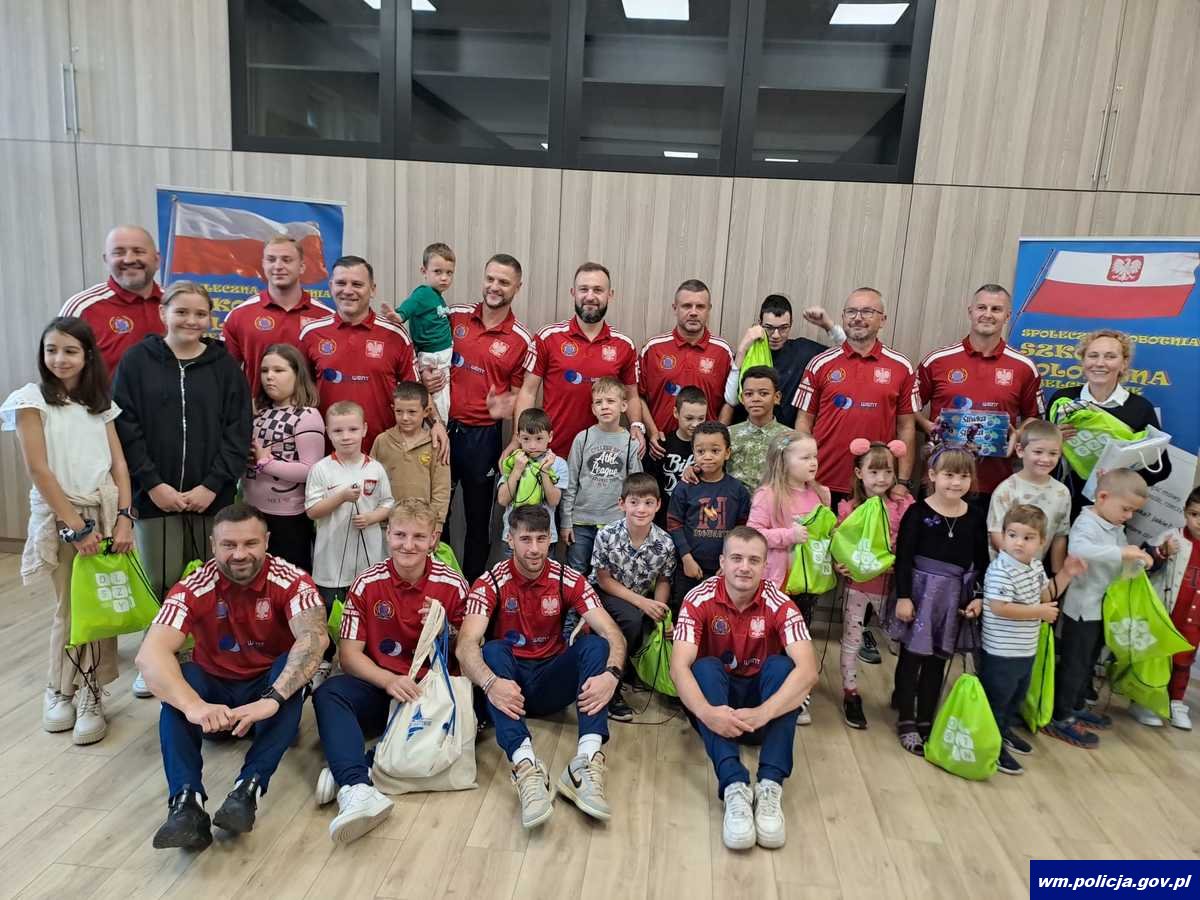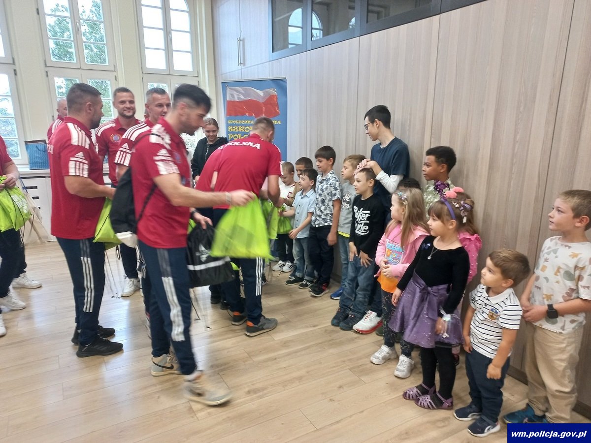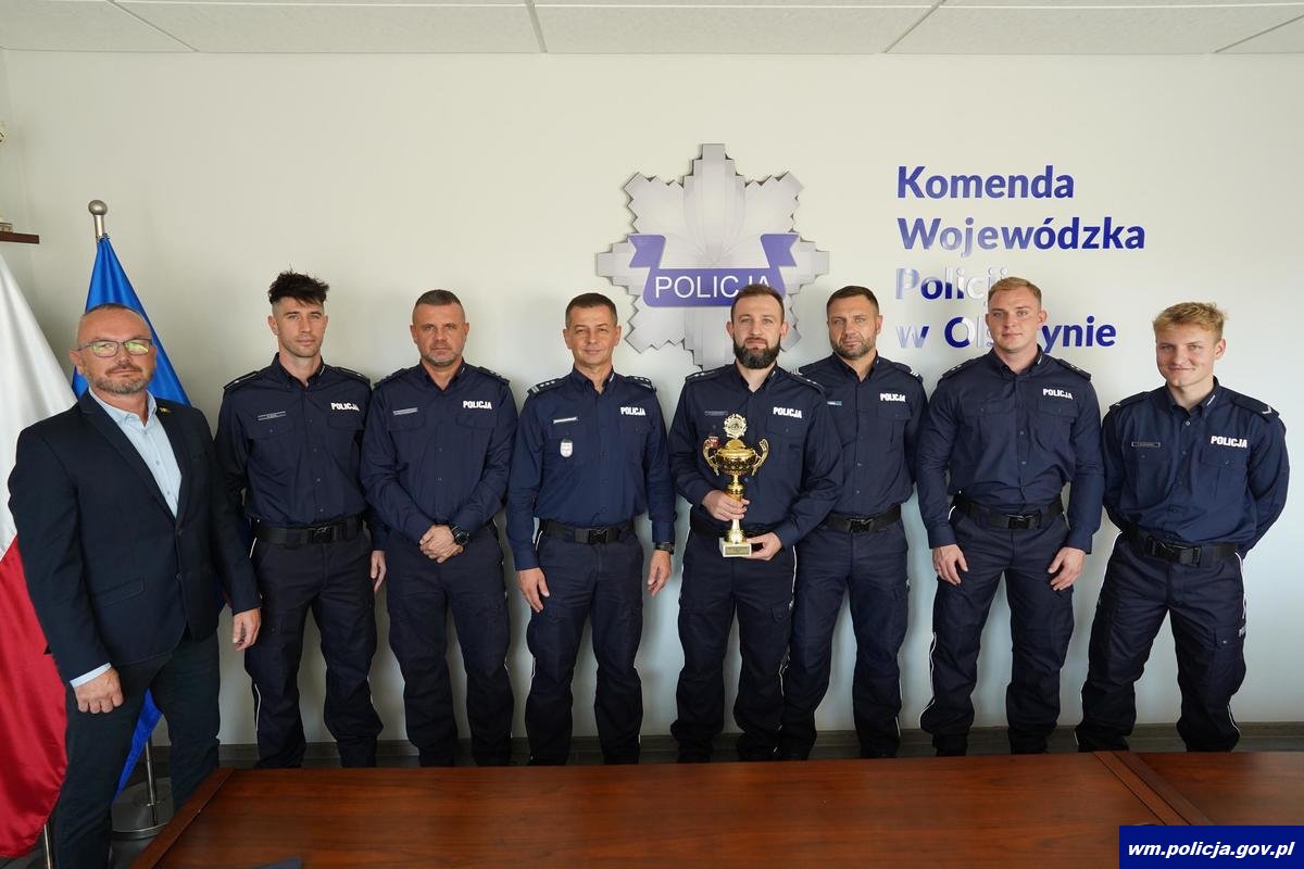 Policjanci z IPA Region Olsztyn spotkali się z insp. Mirosławem Elszkowskim Komendantem Wojewódzkim Policji w Olsztynie. Funkcjonariusze podczas spotkania, na ręce komendanta złożyli zdobyty za zajęcie pierwszego miejsca w Mistrzostwach Świata Służb Bezpieczeństwa w Piłce Nożnej „WISPA Belgrad 2024” puchar. Insp. Mirosław Elszkowski pogratulował policjantom tak znakomitego osiągnięcia i zapewnił o swoim wsparciu podczas następnych zawodów, w których będą brali udział funkcjonariusze zrzeszeni w IPA. Region Olsztyn. Podczas spotkania na ręce Komendanta Wojewódzkiego w Olsztynie trafiły również 2 koszulki podpisane przez piłkarzy Reprezentacji Polski, a które zdobyte zostały podczas poprzedniego wyjazdu. Zamiarem funkcjonariuszy jest ich licytacja, a środki pozyskane ze sprzedaży mają zostać przeznaczone na Fundusz Pomocy Wdowom i Sierotom Po Poległych Policjantach.