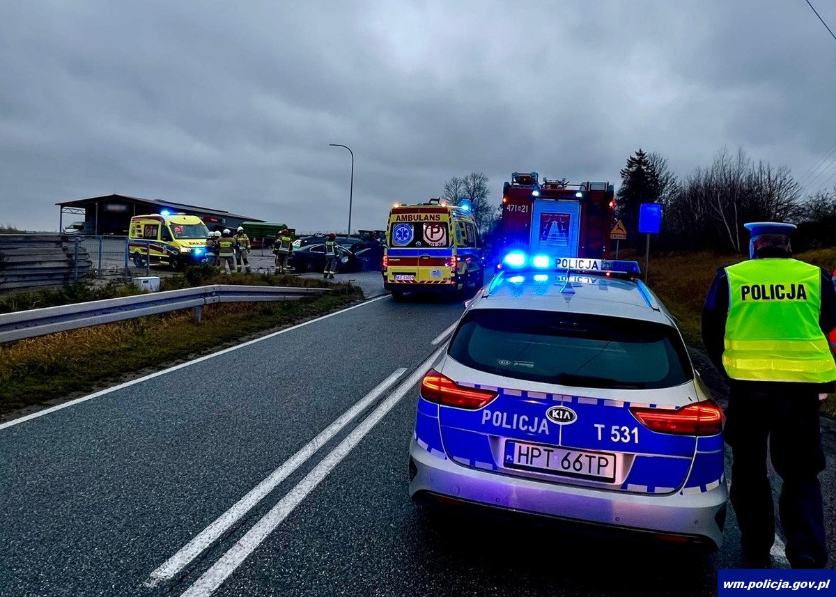 W niedzielę (17.11.2024 r.) około godz. 14:00 oficer dyżurny kętrzyńskich policjantów został powiadomiony o zdarzeniu drogowym, do którego doszło na drodze wojewódzkiej (trasa Kętrzyn-Mrągowo) tuż za miejscowością Kętrzyn na wysokości stacji paliw. Z przekazanych informacji wynikało, że w zdarzeniu udział brało pięć pojazdów i są osoby poszkodowane. We wskazane miejsce natychmiast zostały wysłane służby ratunkowe. Będący na miejscu policjanci ustalili, że kierujący volkswagenem, 20-letni mieszkaniec gminy Kętrzyn podczas manewru wyprzedzania pojazdu BMW zjechał w prawo, gdzie uderzył w wyprzedzane auto, a następnie zderzył się czołowo z pojazdem nadjeżdżającym z naprzeciwka, również z BMW. Siła uderzenia była na tyle duża, że pojazdy te następnie uderzyły w dwa inne auta podróżujące tą trasą. Z miejsca zdarzenia Lotniczym Pogotowiem Ratunkowym z obrażeniami ciała został zabrany 20-letni kierowca volkswagena. Na szczęście żaden inny uczestnik tego zdarzenia nie odniósł poważniejszych obrażeń. Droga wojewódzka była zablokowana przez blisko 5 godzin. Policjanci kierowali na objazdy przez pobliskie miejscowości. Policjanci szczegółowo wyjaśniają wszystkie przyczyny i okoliczności tego zdarzenia drogowego.