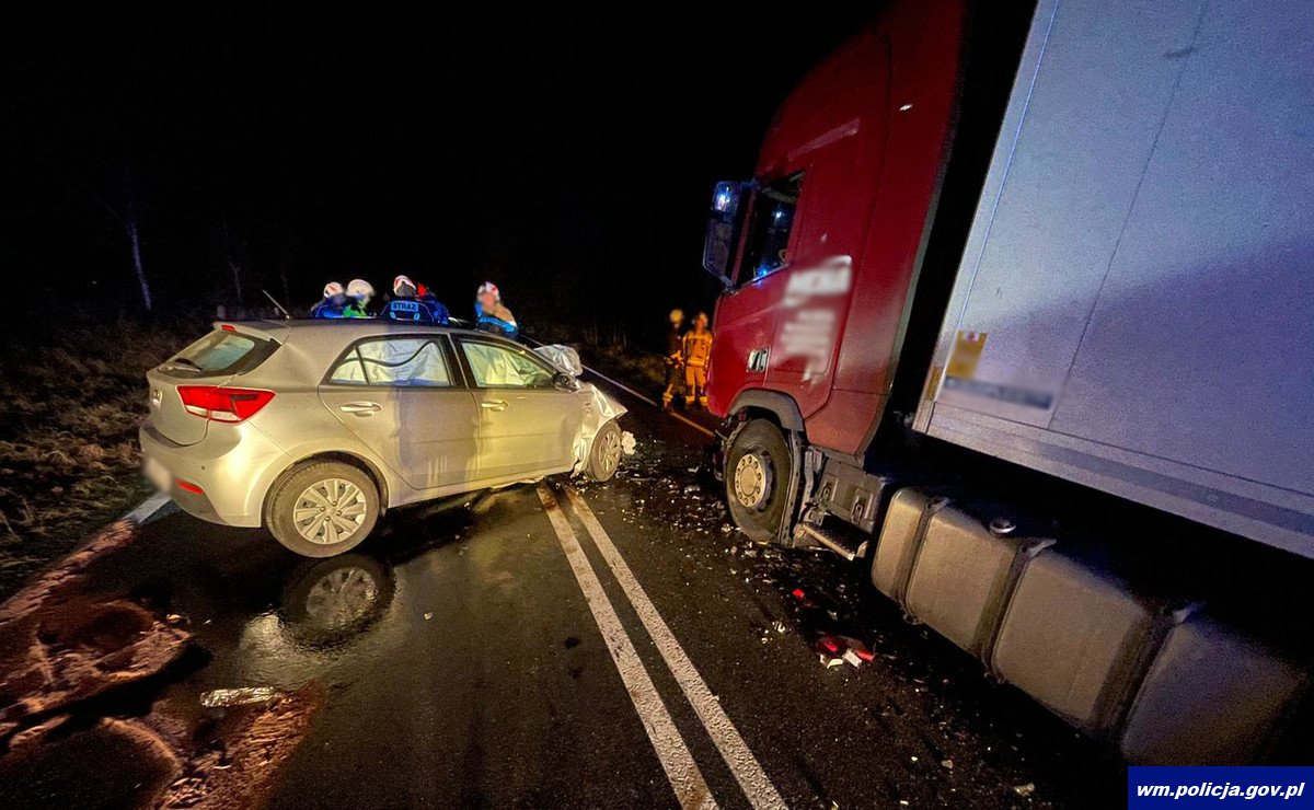 Niestety miniony weekend zakończył się tragicznie. Przed godziną 23:00 na drodze krajowej numer 53 w pobliżu miejscowości Tylkowo, doszło do zdarzenia drogowego z udziałem samochodu osobowego marki Kia oraz pojazdu ciężarowego marki Scania z naczepą. Policjanci ustalili, że kierujący samochodem osobowym 25-letni mieszkaniec województwa wielkopolskiego podróżował w kierunku miejscowości Szczytno. Mężczyzna z nieznanych przyczyn zjechał na przeciwległy pas ruchu, doprowadzając do zderzenia czołowego z jadącym z naprzeciwka pojazdem ciężarowym. W wyniku odniesionych obrażeń 25-latek poniósł śmierć na miejscu. Funkcjonariusze zbadali stan trzeźwości 54-letniego kierowcy ciężarówki. Mieszkaniec województwa mazowieckiego był trzeźwy i nie potrzebował pomocy medycznej. Droga krajowa była całkowicie zablokowana na czas przeprowadzanych czynności, w związku z czym mundurowi wyznaczyli objazdy. Ruch pojazdów został wznowiony po godzinie 6:00 rano. Szczycieńscy funkcjonariusze pod nadzorem prokuratora prowadzą czynności w celu ustalenia dokładnych okoliczności tego wypadku.