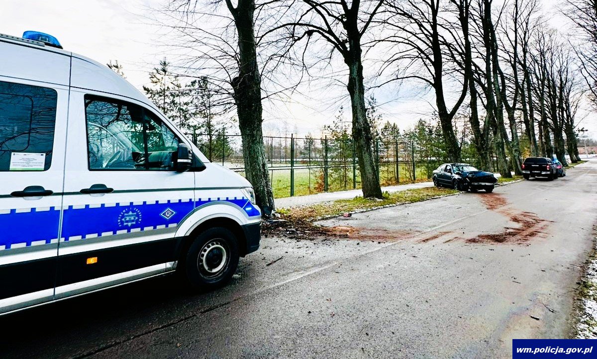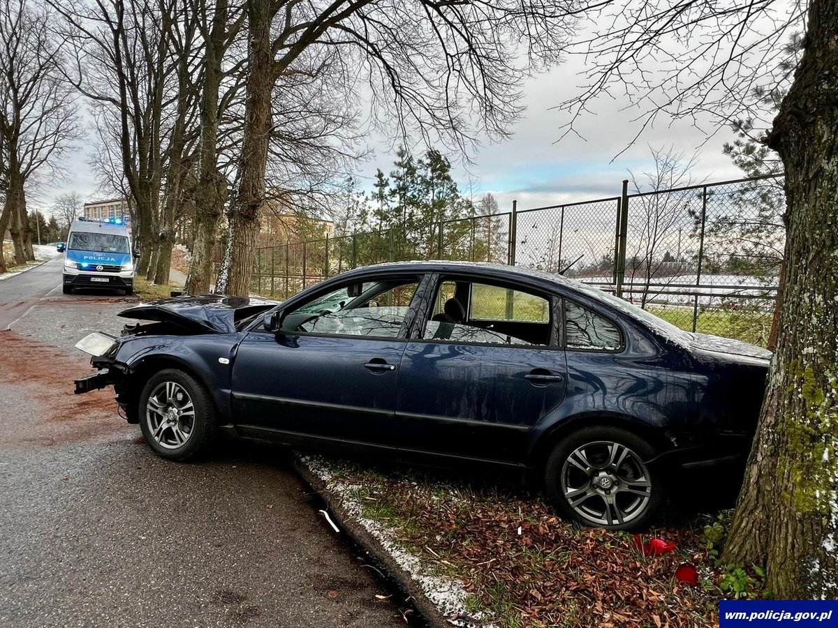 W niedzielę (24.11.2024 r.) kwadrans przed godz. 6:00 oficer dyżurny kętrzyńskich policjantów otrzymał zgłoszenie o zdarzeniu drogowym, do którego doszło na trasie Biedaszki-Smokowo w gm. Kętrzyn. Z przekazanych informacji wynikało, że pojazd uderzył w przydrożne drzewo i są 3 osoby poszkodowane. We wskazane miejsce natychmiast zostały wysłane służby ratunkowe. Będący na miejscu policjanci ustalili, że kierujący volkswagenem, 22-latek na łuku drogi stracił panowanie nad pojazdem, zjechał na pobocze, gdzie uderzył najpierw w jedno drzewo, a następnie pojazd odbił się i uderzył w kolejne. Przeprowadzone badanie stanu trzeźwości kierującego wykazało, że był pijany. Jakby tego było mało, nie posiadał w ogóle uprawnień do kierowania autem. Do szpitala z obrażeniami ciała trafił zarówno kierowca jak i 20-letni pasażer oraz 21-letnia pasażerka. Policjanci szczegółowo wyjaśniają wszystkie przyczyny i okoliczności tego zdarzenia drogowego.
