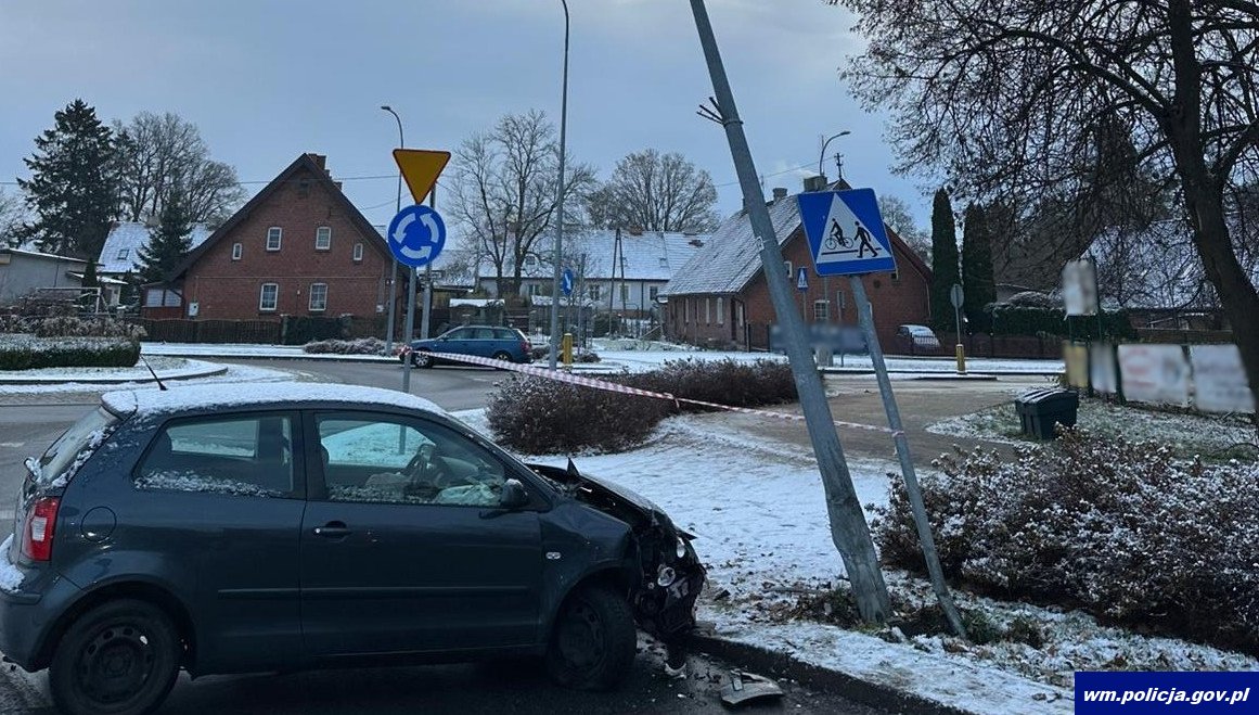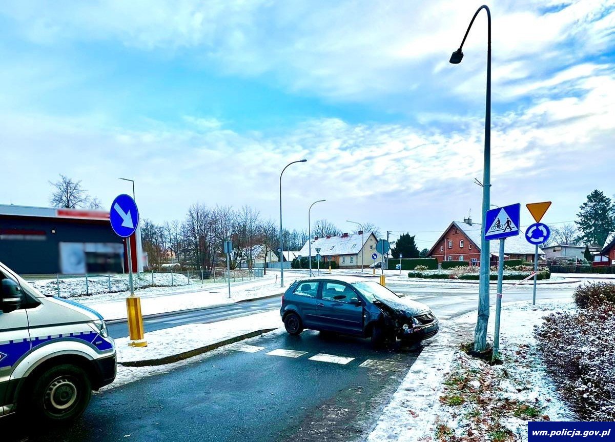 Również w niedzielę o godz. 7:30 policjanci otrzymali zgłoszenie, że na ul. Szpitalnej auto uderzyło w latarnię i wydobywa się z niego dym. Z przekazanych informacji wynikało, że pojazdem podróżowała jedna osoba. We skazane miejsce natychmiast został wysłany patrol kętrzyńskiej drogówki. Będący na miejscu policjanci ustalili, że kierująca volkswagenem 64-letnia kobieta nie dostosowała prędkości do warunków ruchu w konsekwencji czego, uderzyła w słup oświetleniowy. Na szczęście kobieta nie odniosła obrażeń.