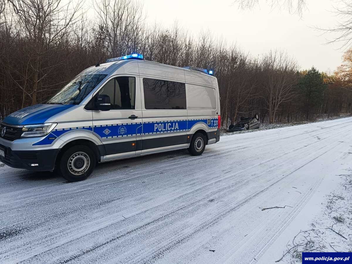 Do najpoważniejszego zdarzenia drogowego doszło w sobotę (23.11.2024 r.) przed godziną 10:00 na trasie Jurkiszki-Galwiecie. Wtedy to, 23-letnia kierująca osobową toyotą na łuku oblodzonej drogi straciła panowanie nad pojazdem i zjechała do przydrożnego rowu, gdzie auto przewróciło się na dach. Kobieta podróżowała sama i była trzeźwa.