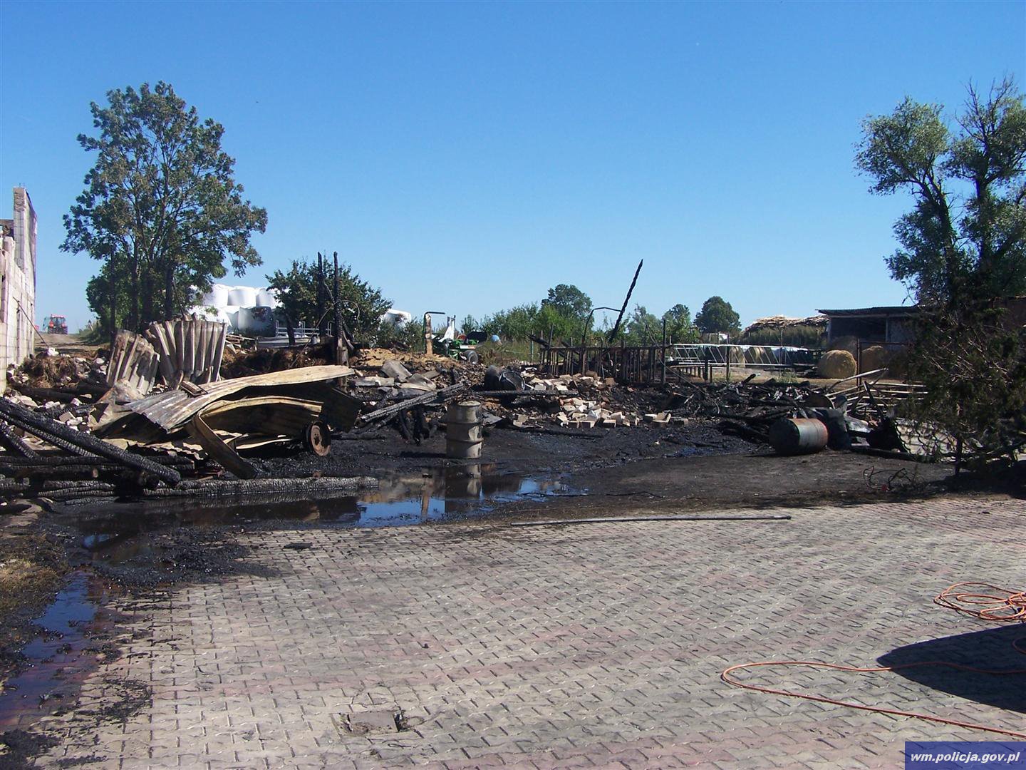 Do oficera dyżurnego komendy Policji w Szczytnie zadzwonił dyżurny szczycieńskich strażaków powiadamiając, że w jednej z miejscowości w gminie Dźwierzuty palą się budynki na kilku sąsiadujących ze sobą posesjach. Policjanci na miejscu potwierdzili zgłoszenie i ustalili, że pożar strawił łącznie siedem drewnianych budynków gospodarczych w trzech sąsiadujących ze sobą gospodarstwach rolnych. Obecnie trwa akcja dogaszania pożaru i szacowanie strat. Policjanci wyjaśniają okoliczności zdarzenia.