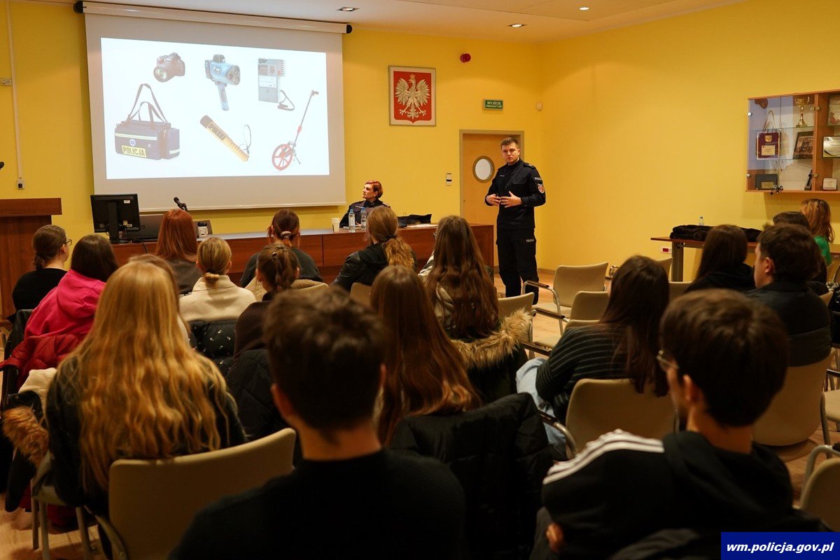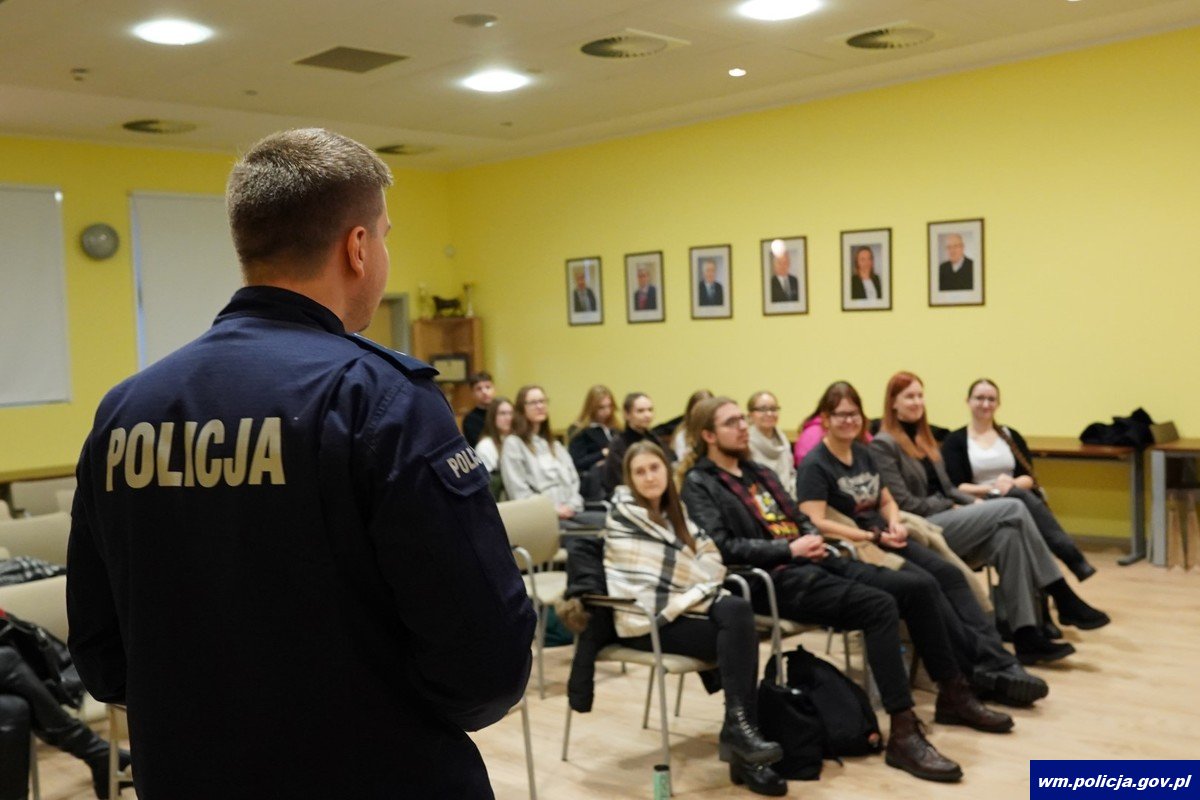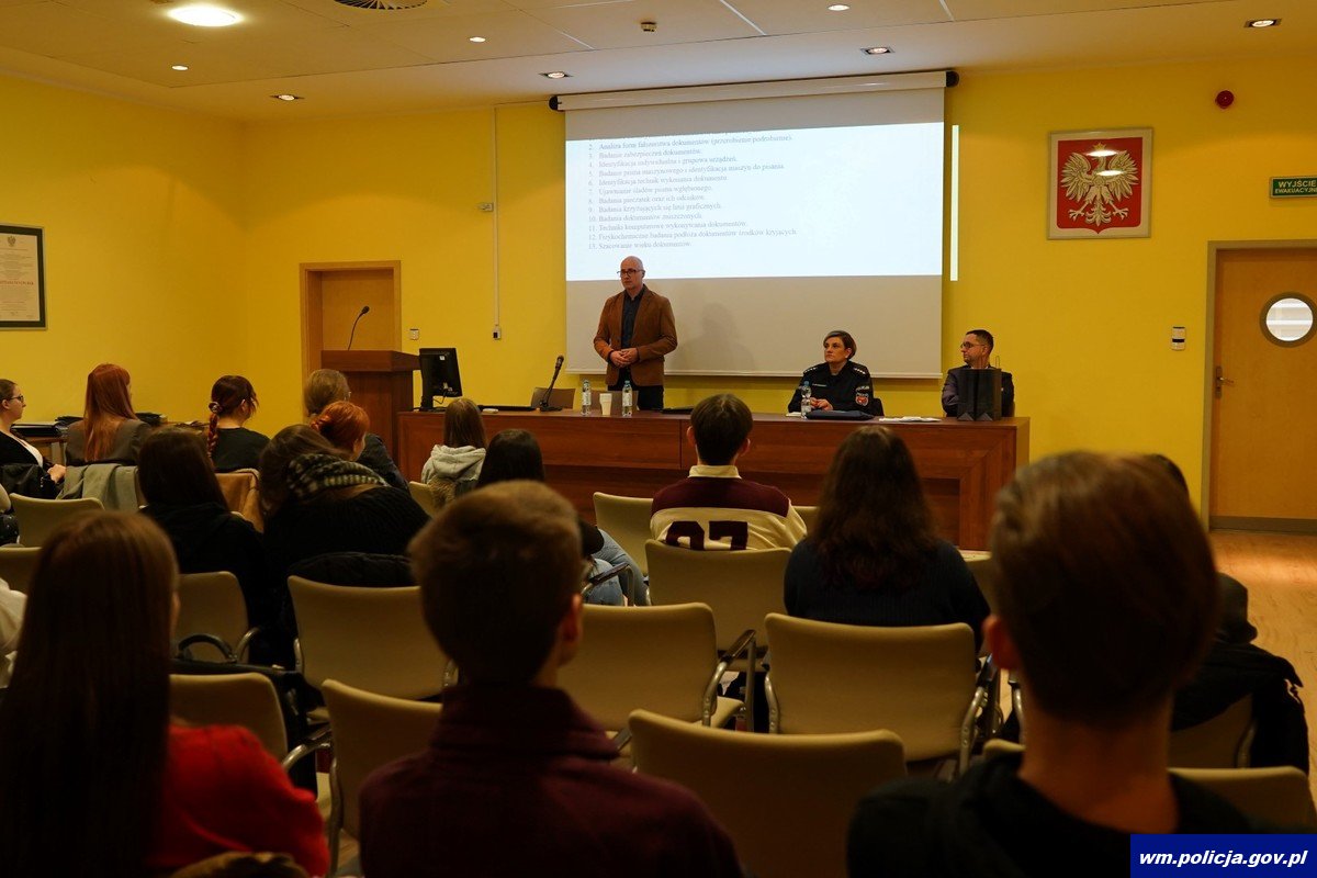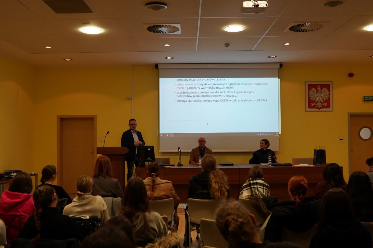 Na zaproszenie przedstawicieli Studenckiego Koła Naukowego Kryminologii „Vestigium” Uniwersytetu Warmińsko-Mazurskiego w Olsztynie policjanci i pracownicy Komendy Wojewódzkiej Policji w Olsztynie podzieli się swoją ekspercką wiedzą ze studentami. Zaproszeni prelegenci przybliżyli młodym ludziom specyfikę konkretnych komórek organizacyjnych Policji, tym samym zachęcają ich do wstąpienia w nasze szeregi. Jest to już kolejne wydarzenie organizowane przez Sekcję Doboru i Rezerwy Kadrowej Komendy Wojewódzkiej Policji w Olsztynie.
