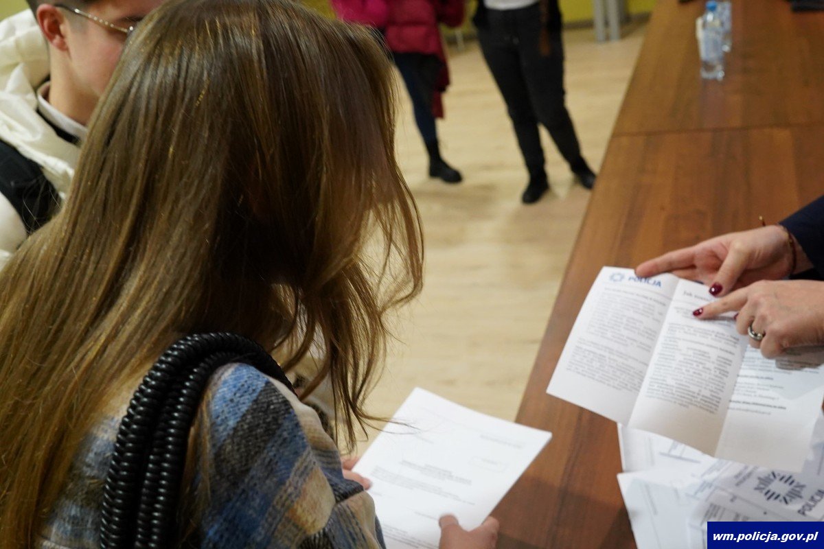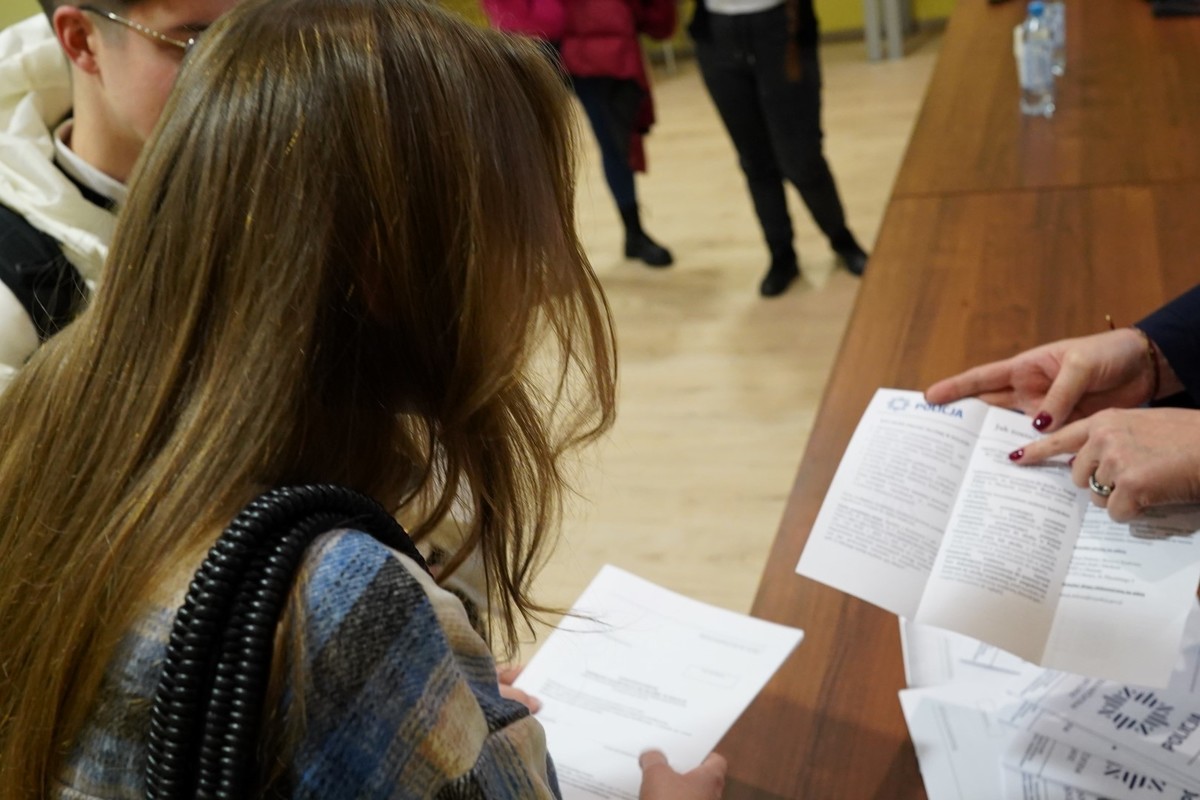 Studenci mogli także zapoznać się ze szczegółami rekrutacji do służby w Policji. Każdy chętny mógł porozmawiać z policjantką z Sekcji Doboru i Rezerwy Kadrowej Komendy Wojewódzkiej Policji w Olsztynie na temat poszczególnych etapów postępowania kwalifikacyjnego, tajników codziennej służby czy możliwości rozwoju, jakie daje Policja.