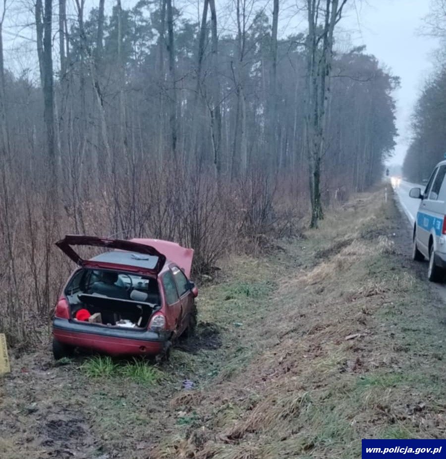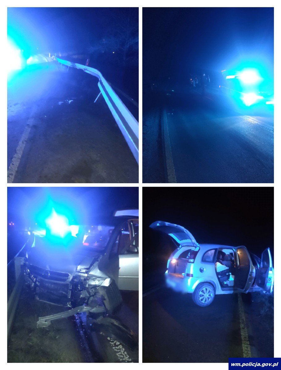 Do zdarzenia doszło w nocy z soboty na niedzielę (25/26.01.2025) kilka minut po godz. 3:00 w miejscowości Biedaszki w gminie Kętrzyn. Wówczas to oficer dyżurny został powiadomiony o wypadku i dwóch osobach poszkodowanych, które potrzebują pomocy medycznej. Na miejsce natychmiast zostały wysłane służby ratunkowe. Będący na miejscu policjanci ustalili, że kierujący samochodem marki Ford Mondeo 20-letni mieszkaniec Kętrzyna, na łuku drogi stracił panowanie nad pojazdem, zjechał z drogi i uderzył w zaparkowany przy budynku mieszkalnym pojazd marki Audi. W wyniku zderzenia kierujący z obrażeniami ciała trafił do szpitala. Obrażeń ciała doznała także 16-letnia pasażerka forda, która również została przewieziona do szpitala. Badanie stanu trzeźwości kierującego wykazało ponad 1 promil alkoholu w organizmie kierującego. Policjanci zatrzymali mu prawo jazdy, natomiast pojazd zabezpieczono na parkingu strzeżonym. Policjanci wyjaśniają wszystkie przyczyny i okoliczności tego wypadku drogowego.