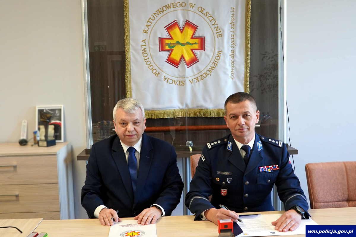 Skuteczna współpraca dla dobra innych oraz podnoszenie umiejętności i kompetencji na rzecz bezpieczeństwa podczas interwencji – to cele porozumienia podpisanego między Komendą Wojewódzką Policji w Olsztynie a Wojewódzką Stacją Pogotowia Ratunkowego w Olsztynie. Sygnatariusze porozumienia, czyli insp. Mirosław Elszkowski Komendant Wojewódzki Policji w Olsztynie i Marek Myszkowski Dyrektor Wojewódzkiej Stacji Pogotowia Ratunkowego w Olsztynie spotkali się, aby omówić szczegóły bieżącej i przyszłej współpracy.