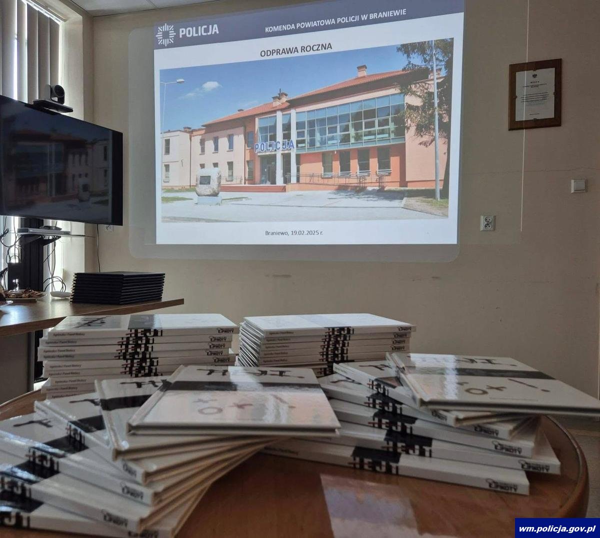 Odprawa była doskonałą okazją, by podsumować zeszłoroczny projekt, w realizację którego wspólnie z Urzędem Miasta Braniewa włączyli się miejscowi policjanci oraz funkcjonariusze z Komendy Wojewódzkiej Policji w Olsztynie. Jednym z głównych elementów projektu pn. „Braniewo RAZEM w bezpieczne dziś i jutro” było stworzenie komiksu, będącego zilustrowaniem historii nastolatka dotkniętego działaniem hejtera. Na uwagę zasługuje tutaj fakt, iż na rynku wydawniczym próżno szukać tego typu publikacji dla dzieci i młodzieży - jest to zatem innowacyjne podejście do tego trudnego tematu. Komiks w połączeniu z dodatkowym elementem do wykorzystania przez prelegentów - scenariuszem zajęć, będzie teraz kompleksowym narzędziem do pracy z uczniami w tym obszarze.