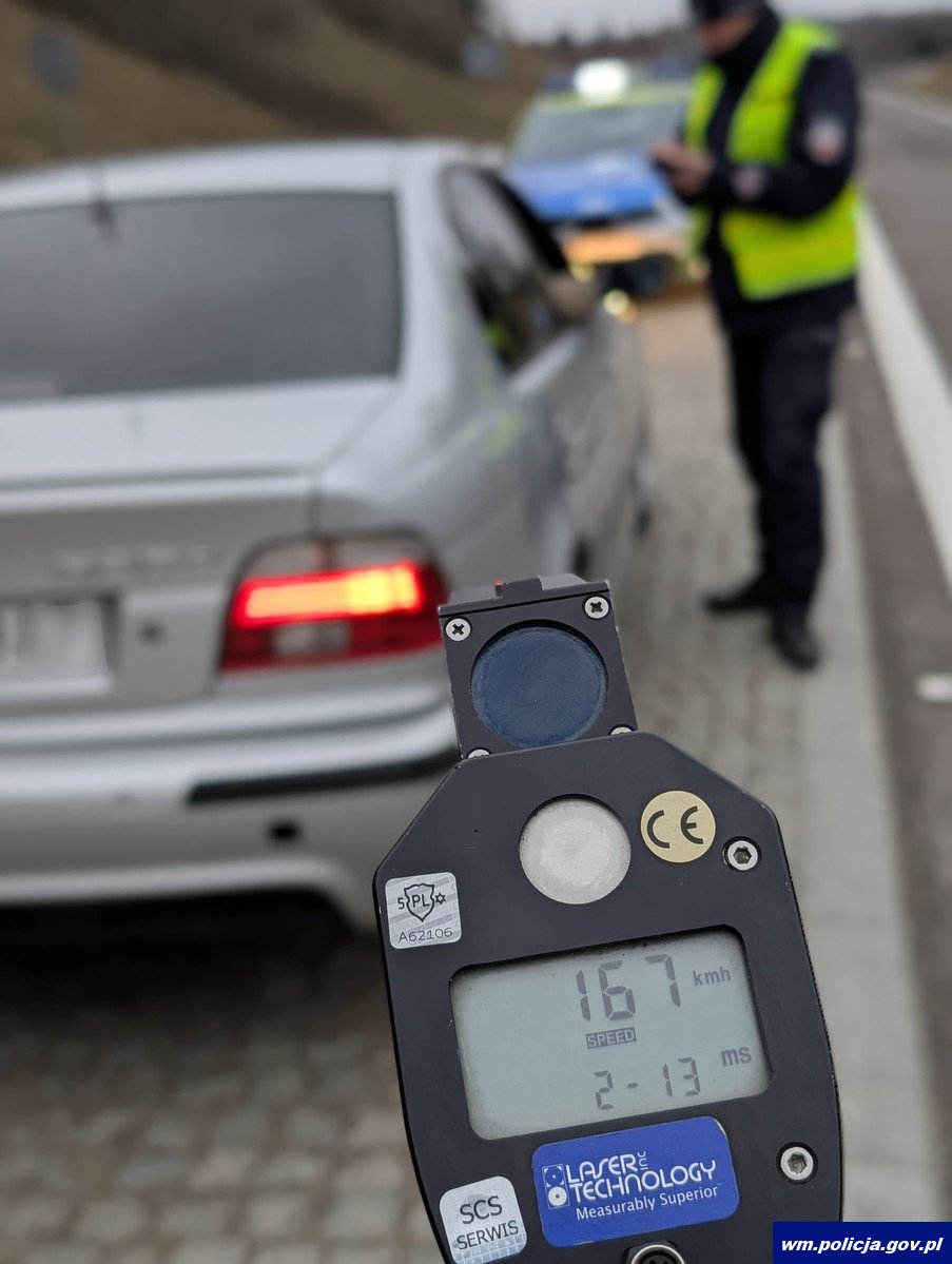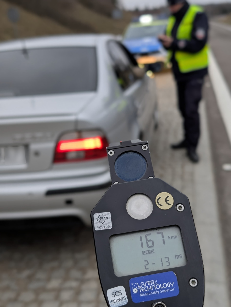 W niedzielę (02.03.2025) po godz. 16:00 gołdapscy policjanci zatrzymali do kontroli drogowej kierującego BMW, który obwodnicą Gołdapi pędził z prędkością 167 km/h. W miejscu podjętej kontroli obowiązuje ograniczenie prędkości do 90 km/h. Za kierownicą pojazdu siedział 41-letni mężczyzna. Zgodnie z obowiązującymi przepisami, został on ukarany mandatem karnym w wysokości 2500 złotych, a na jego konto zostało dopisanych 15 punktów karnych.