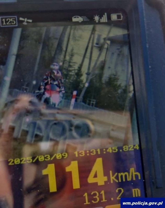 W niedzielne popołudnie (09.03.2025) funkcjonariusze szczycieńskiej drogówki kontrolowali prędkość pojazdów przejeżdżających przez Wielbark. Po godzinie 13:00 policjanci zatrzymali do kontroli drogowej motocykl marki Yamaha, którym kierował 50-latek z powiatu olsztyńskiego. Mężczyzna znacznie przekroczył dozwoloną prędkość w obszarze zabudowanym, gdzie obowiązuje prędkość 50 km/h. Motocyklista miał „na liczniku” 114 km/h, za co stracił prawo jazdy. Ponadto został ukarany mandatem w kwocie 4000 złotych, a na jego „konto” wpłynęło 14 punktów karnych, ponieważ mężczyzna popełnił wykroczenie w warunkach recydywy.