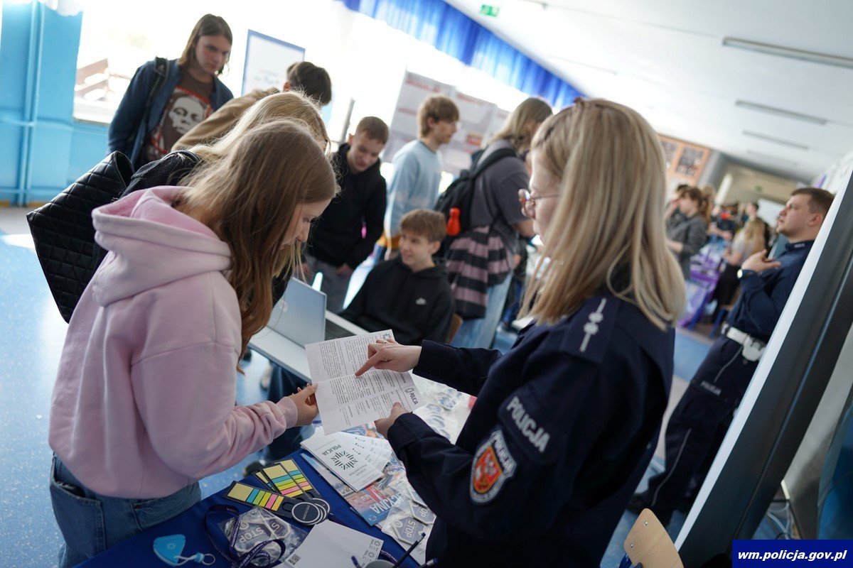 Z kolei przedstawiciele z Sekcji Doboru i Rezerwy Kadrowej KWP w Olsztynie przygotowali specjalne stoisko, gdzie zainteresowani mogli dowiedzieć się, jak przebiega proces rekrutacji do policji, jakie wymagania należy spełnić oraz na co zwrócić uwagę, aby pomyślnie przejść kolejne etapy doboru. Funkcjonariusze chętnie odpowiadali na pytania młodzieży, przybliżając im zarówno wyzwania, jak i satysfakcję płynącą ze służby w niebieskim mundurze.