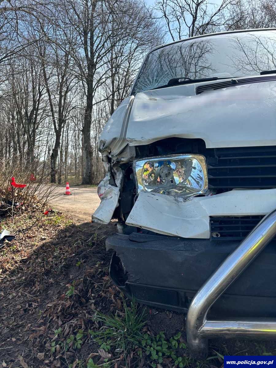 W sobotę (12.04.2025 r.) o godzinie 10:25 funkcjonariusze mrągowskiej drogówki interweniowali na miejscu zdarzenia drogowego, w miejscowości Machary, gm. Piecki. Policjanci pracujący na miejscu zdarzenia ustalili, że 56- letni kierujący motorowerem marki ZIPP, z nieznanych przyczyn, na łuku drogi, zjechał na przeciwległy pas jezdni, doprowadzając do zderzenia czołowego, z prawidłowo jadącym pojazdem marki Volkswagen, którym podróżował 66- letni mężczyzna. W wyniku tego zdarzenia 56-letni kierujący jednośladem doznał urazu kończyn dolnych i został przetransportowany do szpitala. Z uwagi na obrażenia, zdarzenie zostało zakwalifikowane jako wypadek. Uczestnicy zdarzenia drogowego, byli trzeźwi. Przez dłuższy czas były utrudnienia w ruchu, gdyż droga w miejscu wypadku drogowego była zablokowana. Dokładne okoliczności zdarzenia, wyjaśni policyjne dochodzenie.
