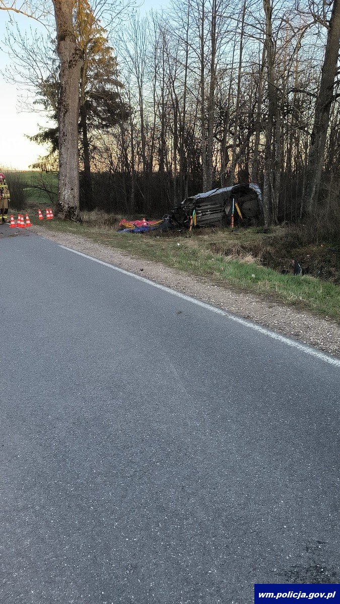 Do groźnego wypadku doszło też w sobotni (12.04.2025) wieczór na drodze powiatowej na trasie Budwity - Wielki Dwór w gm. Małdyty. 38-letni kierujący osobowym oplem uderzył w drzewo a następnie wjechał do rowu. Mężczyzna też w sanie ciężkim został przetransportowany helikopterem do szpitala. 38-latek nie powinien w ogóle wsiadać za kierownice auta ponieważ posiadał aktywny zakaz kierowania wszelkimi pojazdami.