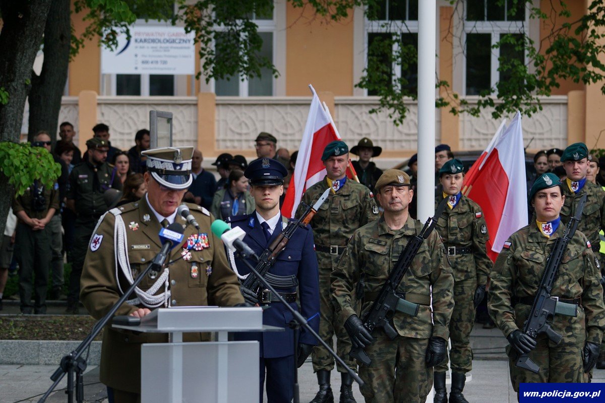 W stolicy Warmii i Mazur odbyły się Wojewódzkie Obchody Święta Narodowego Trzeciego Maja. Uroczystości były okazją do wspólnego uczczenia jednej z najważniejszych rocznic w historii Polski. W tym podniosłym wydarzeniu wzięli udział przedstawiciele władz wojewódzkich, służb mundurowych, instytucji i urzędów oraz mieszkańcy regionu. Policję reprezentował insp. Mirosław Elszkowski Komendant Wojewódzki Policji w Olsztynie wraz z mł. insp. Andrzejem Kamińskim reprezentującym Komendant-Rektor Akademii Policji w Szczytnie oraz mł. insp. Marcinem Cydzikiem I Zastępcą Komendanta Miejskiego Policji w Olsztynie.