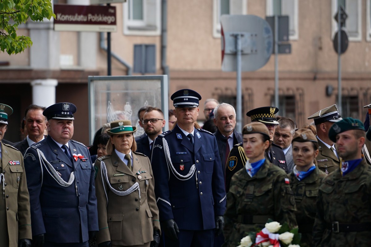 W sobotę (03.05.2025) uroczystości rozpoczęły się mszą św. w intencji Ojczyzny w Bazylice Konkatedralnej Świętego Jakuba. Uczestnicy uroczystości prowadzeni przez poczty sztandarowe i kompanie honorowe przemaszerowali na plac Konsulatu Polskiego, gdzie pod kolumną Orła Białego odbyły się dalsze części obchodów. Uroczyście podniesiona została flaga państwowa, wygłoszono przemówienia okolicznościowe, odczytano Apel Pamięci, oddano salwę honorową. Przedstawiciele władz rządowych, wojewódzkich, samorządowych, służby mundurowe oraz mieszkańcy regionu złożyli kwiaty i znicze pod pomnikiem Orła Białego. Wydarzenie zakończyło się defiladą kompani honorowych.