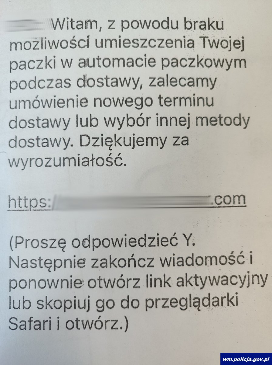 W ostatnim czasie internetowi oszuści coraz chętniej podszywają się pod firmy kurierskie i wysyłają sms-y z linkiem do strony, na której należy dokonać przekierowania przesyłki do innego paczkomatu. Po jego kliknięciu umożliwiamy im wyłudzenie środków z naszego konta bankowego. Wczoraj do węgorzewskiej komendy zgłosił się 22-latek, który kilka dni temu padł ofiarą takiego przestępstwa. Z jego konta łącznie zniknęło prawie 1000 złotych.