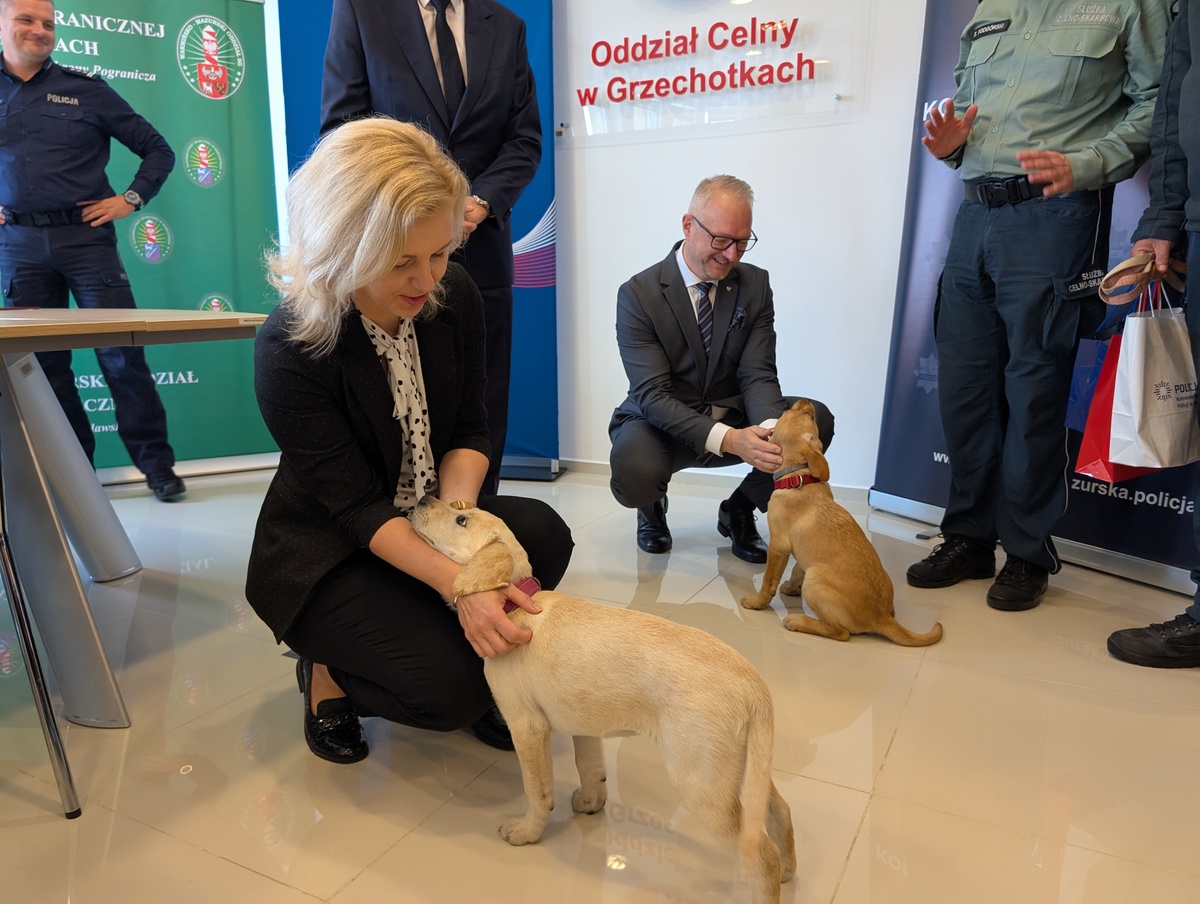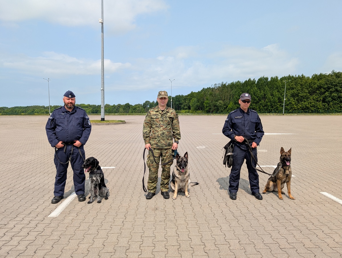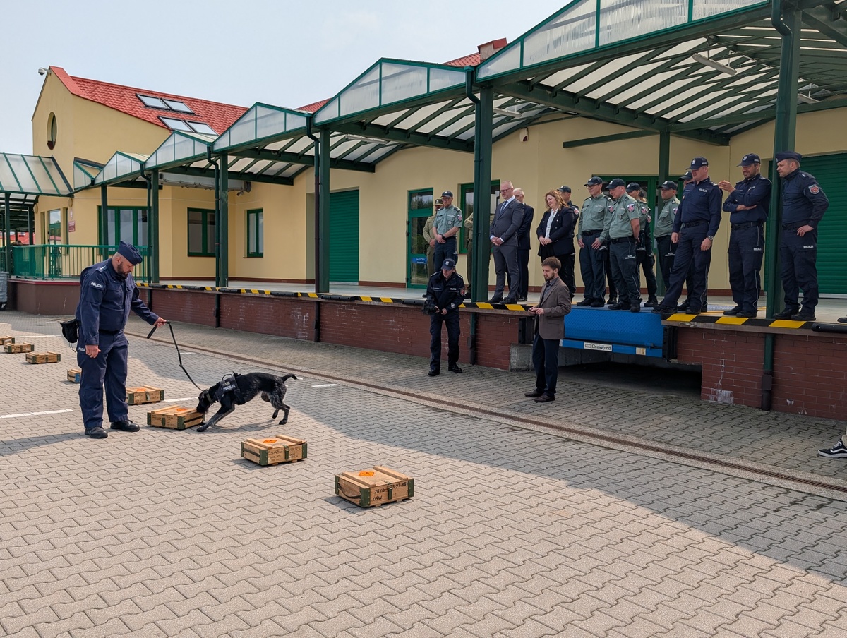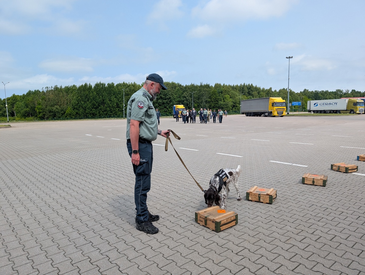 Na przejściu granicznym w Grzechotkach odbyło się szkolenie psów służbowych z udziałem funkcjonariuszy Policji, Krajowej Administracji Skarbowej oraz Straży Granicznej. W wydarzeniu oprócz przedstawicieli kierownictwa zaangażowanych służb, uczestniczyli również Radosław Król Wojewoda Warmińsko-Mazurski i Edyta Olszewska Dyrektor Wydziału Obsługi Urzędu Wojewódzkiego w Olsztynie, którzy z bliska przyglądali się prezentowanym umiejętnościom.