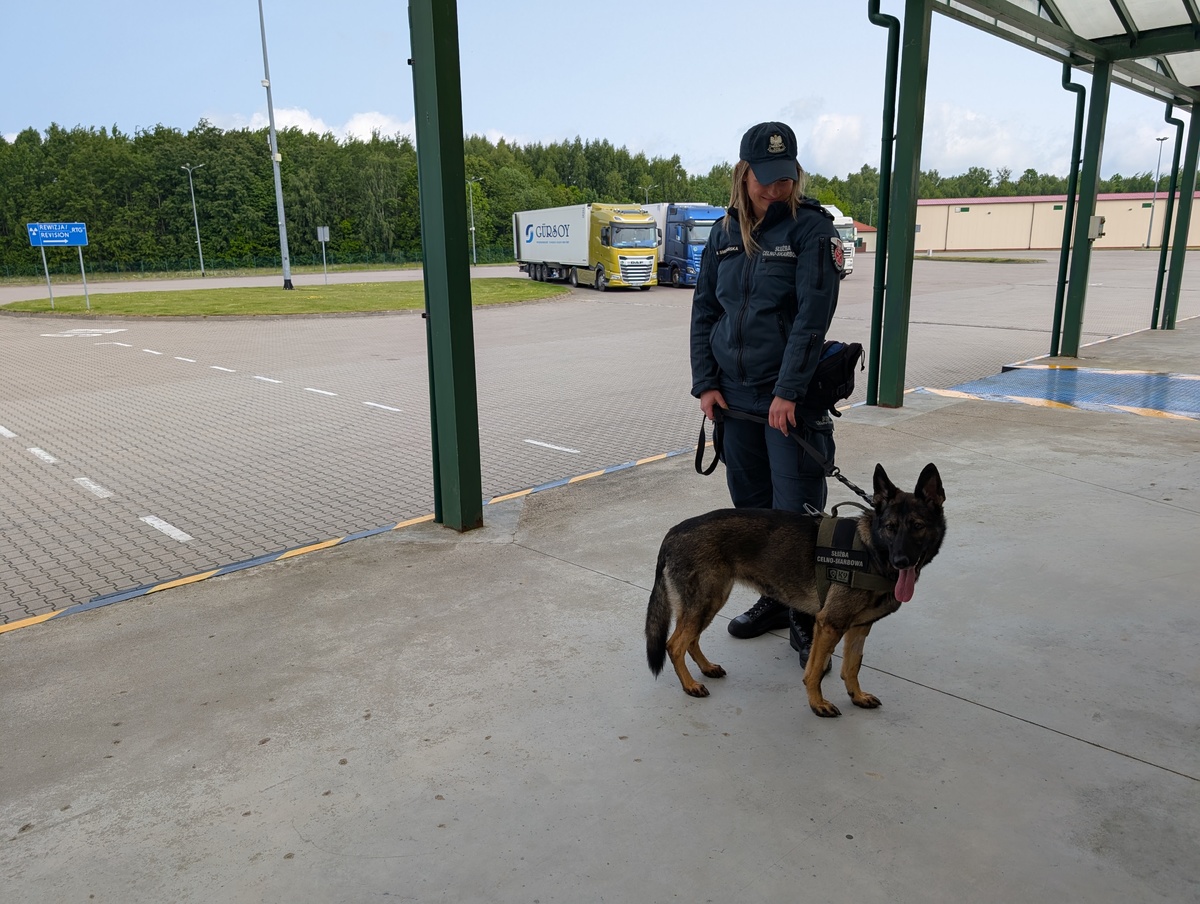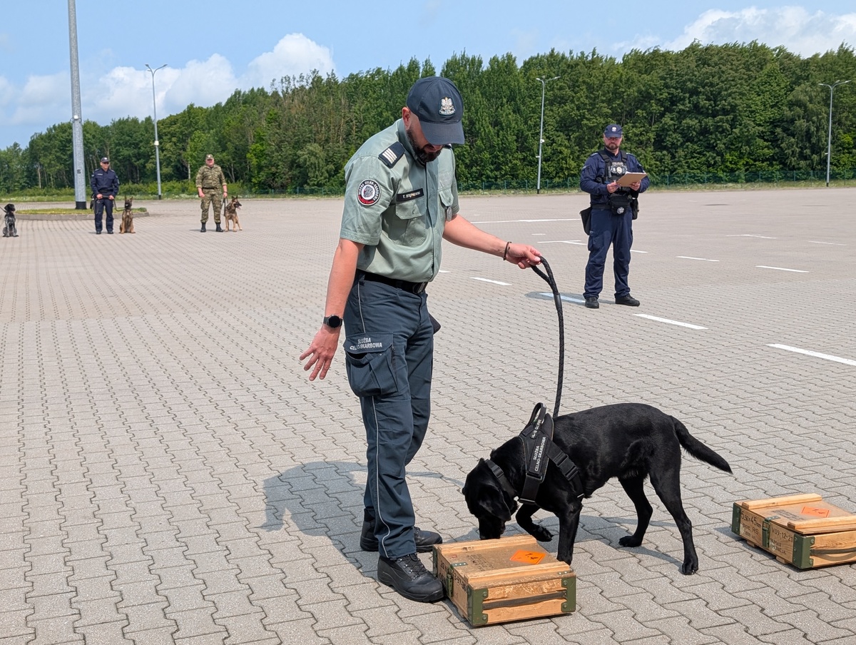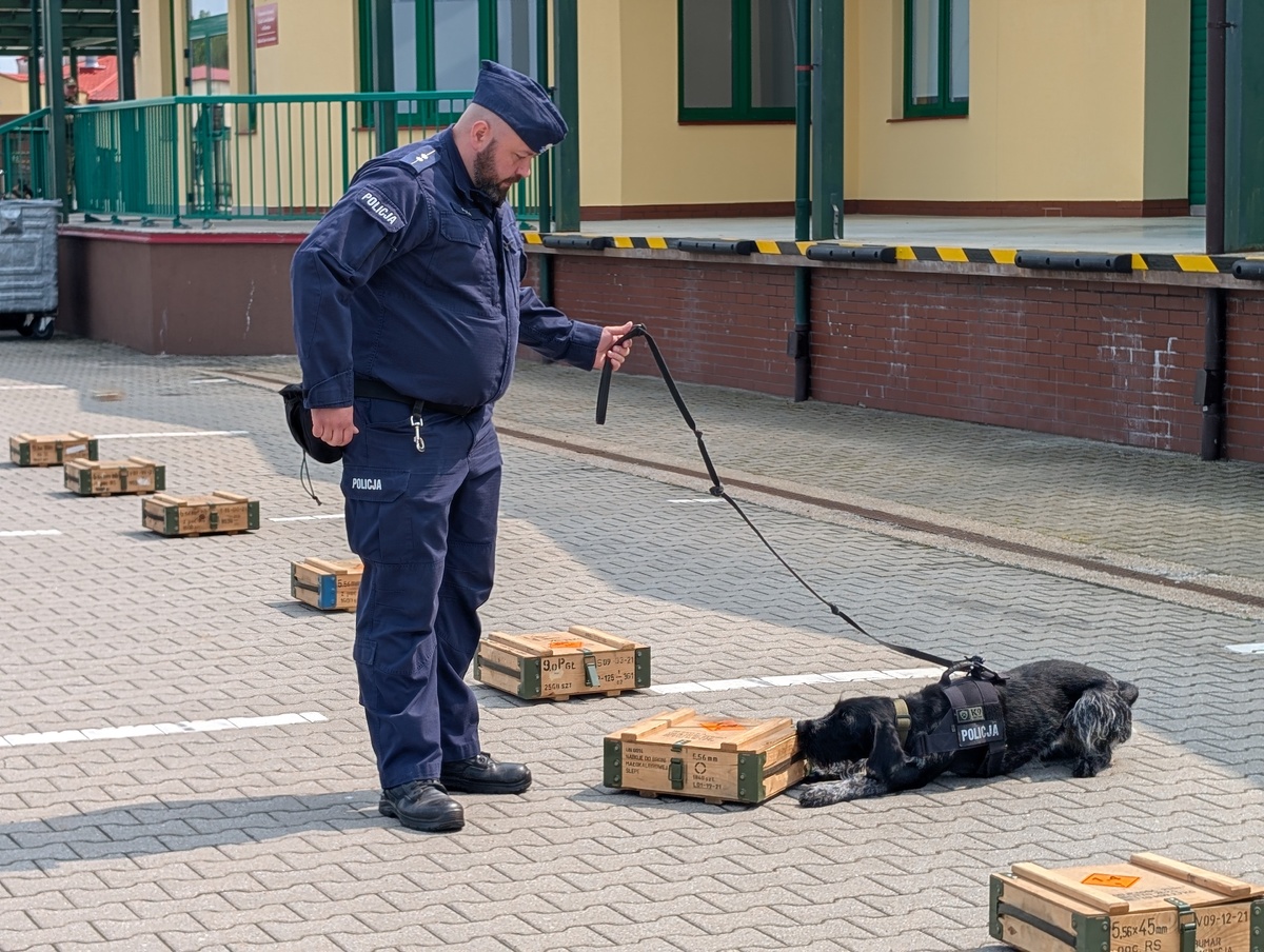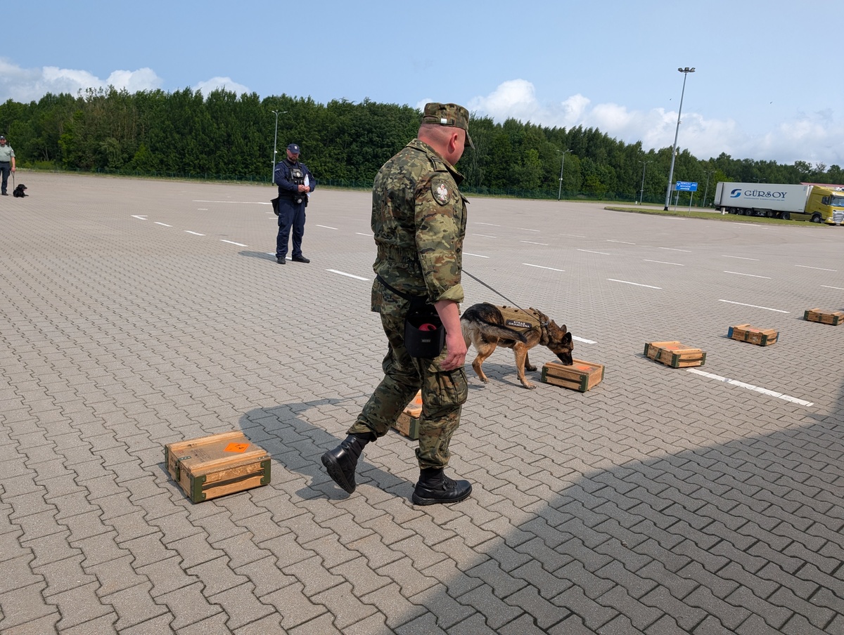 W poniedziałek (02.06.2025 r.) na drogowym przejściu granicznym w Grzechotkach odbyło się specjalistyczne szkolenie psów służbowych z udziałem funkcjonariuszy Policji, Krajowej Administracji Skarbowej oraz Straży Granicznej. Głównym Celem szkolenia było doskonalenie współpracy przewodników z psami służbowymi, w tym techniki tropienia oraz wykrywania zapachu substancji niedozwolonych i materiałów niebezpiecznych – m.in. gotówki, papierosów czy narkotyków.