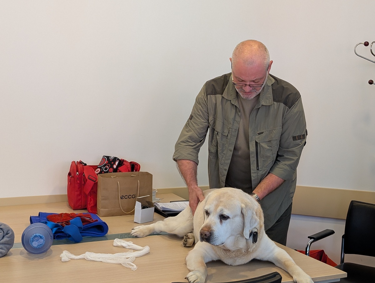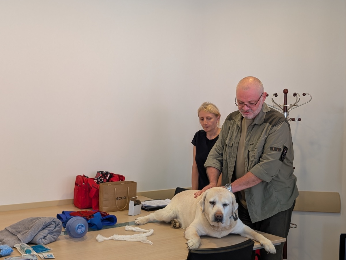 Dodatkowym i niezwykle ważnym punktem programu było szkolenie z udzielania pierwszej pomocy psom służbowym, przeprowadzone przez dr Justynę Radwińską oraz dr Artura Stopyrę z Wydziału Medycyny Weterynaryjnej Uniwersytetu Warmińsko-Mazurskiego w Olsztynie. Uczestnicy mieli okazję zapoznać się z zasadami postępowania w sytuacjach zagrożenia życia czworonożnych funkcjonariuszy, co stanowi nieodzowny element ich ochrony i bezpieczeństwa w codziennej służbie.