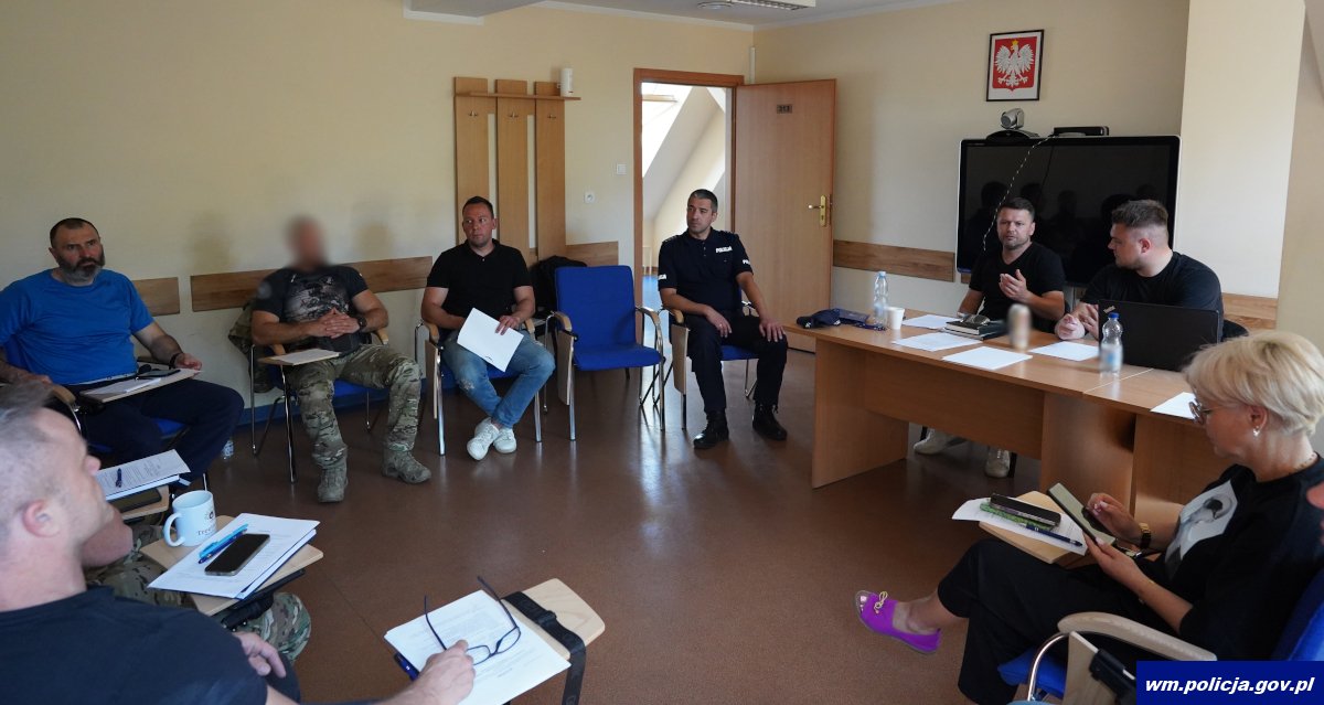 Spotkanie robocze, które odbyło się w poniedziałek (16.06.2025) ma na celu przygotowanie i wypracowanie odpowiednich algorytmów postępowania, które jeszcze bardziej przygotują policjantów do podejmowania przez policjantów interwencji na wodzie i terenach przywodnych wobec osób agresywnych i niebezpiecznych. W obradach wzięli udział eksperci z szeroko rozumianego bezpieczeństwa nad wodą – Biura Prewencji Komendy Głównej Policji, Akademii Policji w Szczytnie, Centrum Szkolenia Policji w Legionowie, Samodzielnego Pododdziału Kontrterrorystycznego Policji w Olsztynie, Wydziału Kadr i Szkolenia KWP w Olsztynie. Koordynacją przedsięwzięcia zajęli się funkcjonariusze z Wydziału Prewencji KWP w Olsztynie, którzy również aktywnie włączyli się w dyskuję.