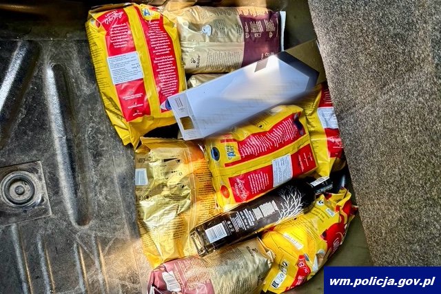W wyniku skutecznego sprawdzenia terenu, funkcjonariusze ujawnili ustalony pojazd zaparkowany na leśnym parkingu przy drodze krajowej nr 16. W środku znajdował się drugi ze sprawców, również obywatel Gruzji, który nie posiadał uprawnień do kierowania pojazdami. Podczas przeszukania auta funkcjonariusze zabezpieczyli artykuły spożywcze i alkoholowe o wartości około 120 zł. Jak się później okazało, pochodziły one z wcześniejszej kradzieży, do której doszło tego samego dnia rano w sklepie w miejscowości Kajkowo.