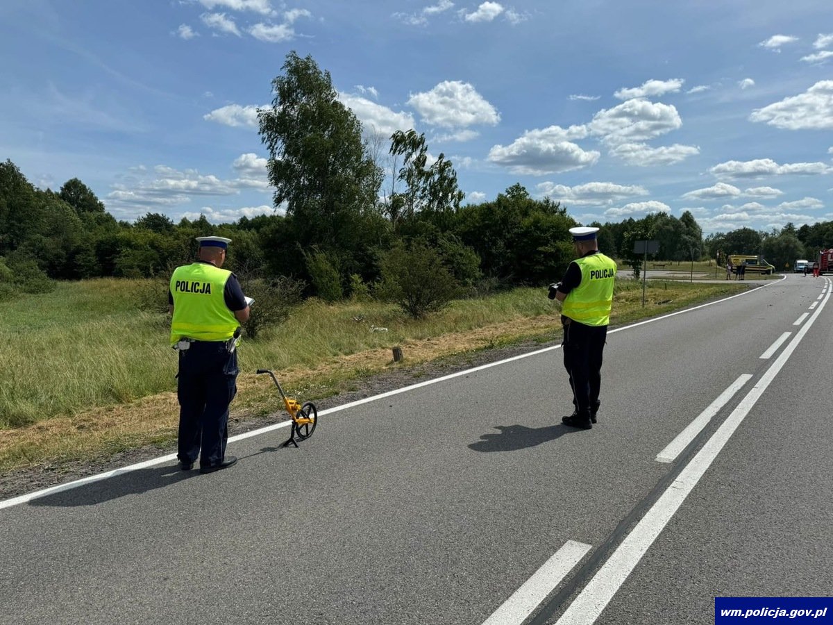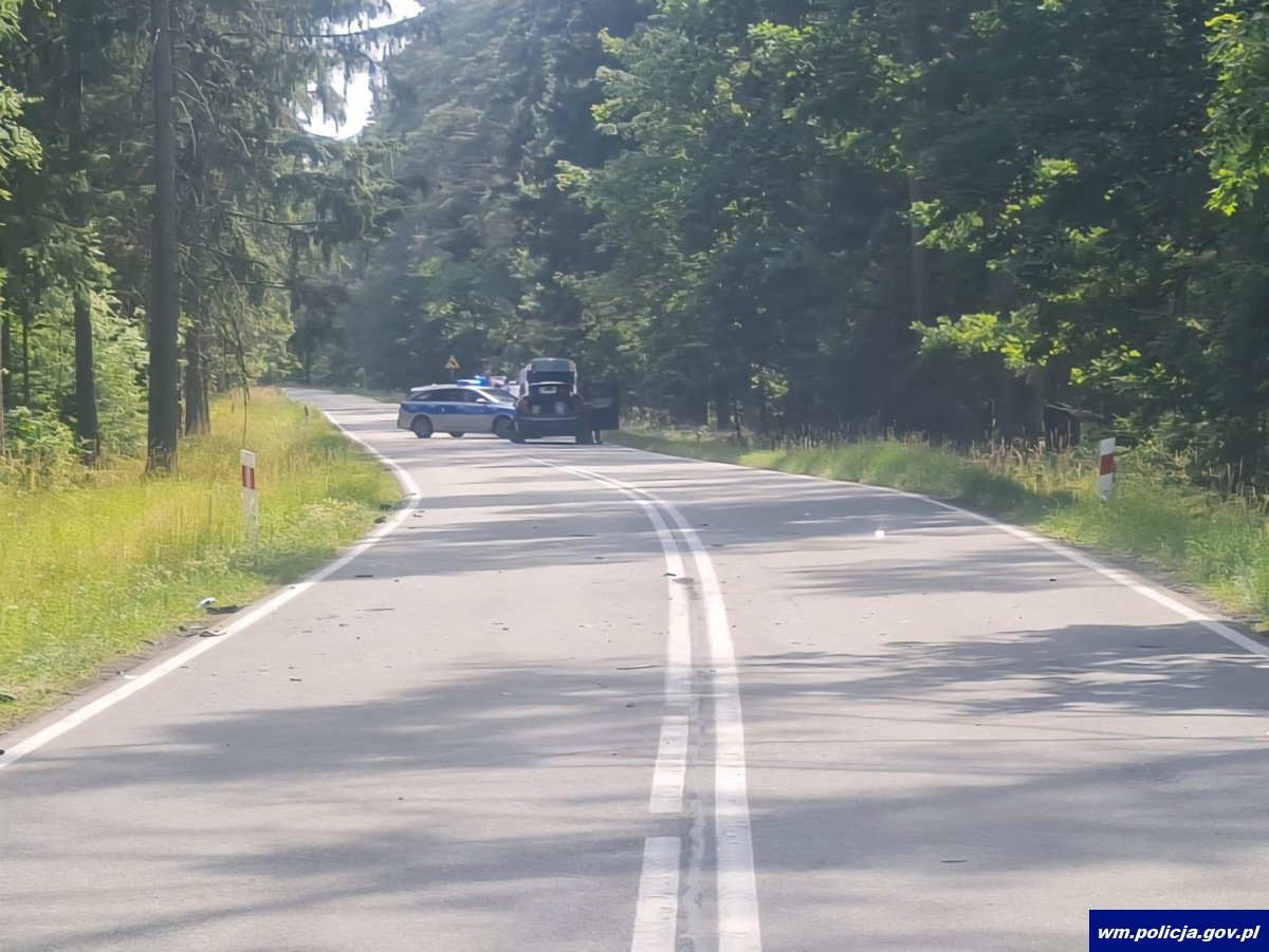 W sobotę (05.07.2025) po godzinie 10:00 na drodze krajowej nr 53, między Leleszkami a Pasymiem doszło do tragicznego w skutkach wypadku z udziałem dwóch motocykli. Ze wstępnych ustaleń funkcjonariuszy wynika, że 19-letni kierujący motocyklem suzuki zjechał na przeciwległy pas ruchu, po wyprzedzeniu innego pojazdu i zderzył się czołowo z nadjeżdżającym z naprzeciwka motocyklistą. 19-letni mieszkaniec gminy Pasym, z poważnymi obrażeniami, został przetransportowany do szpitala śmigłowcem Lotniczego Pogotowia Ratunkowego. Niestety, drugi kierujący, 49-letni mieszkaniec powiatu olsztyńskiego, zginął na miejscu.