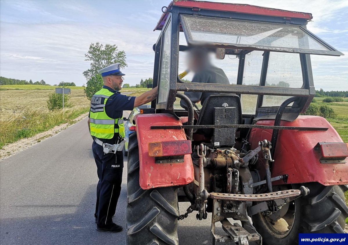 W sobotę (05.07.2025 r.) policjanci z węgorzewskiej drogówki zauważyli ciągnik rolniczy, który poruszał się bez tablic rejestracyjnych. Zatrzymali pojazd do kontroli. Okazało się, że za kierownicą siedzi nietrzeźwy mężczyzna. 55-latek miał 4,5 promila alkoholu w wydychanym powietrzu. W trakcie kontroli policjanci ustalili także, że miał cofnięte uprawnienia do kierowania. To nie jedyne przewinienia, jakie popełnił mieszkaniec gminy Budry. Ciągnik marki Ursus nie był zarejestrowany, a tym samym nie posiada ubezpieczenia OC. Pojazd został odholowany na parking strzeżony.