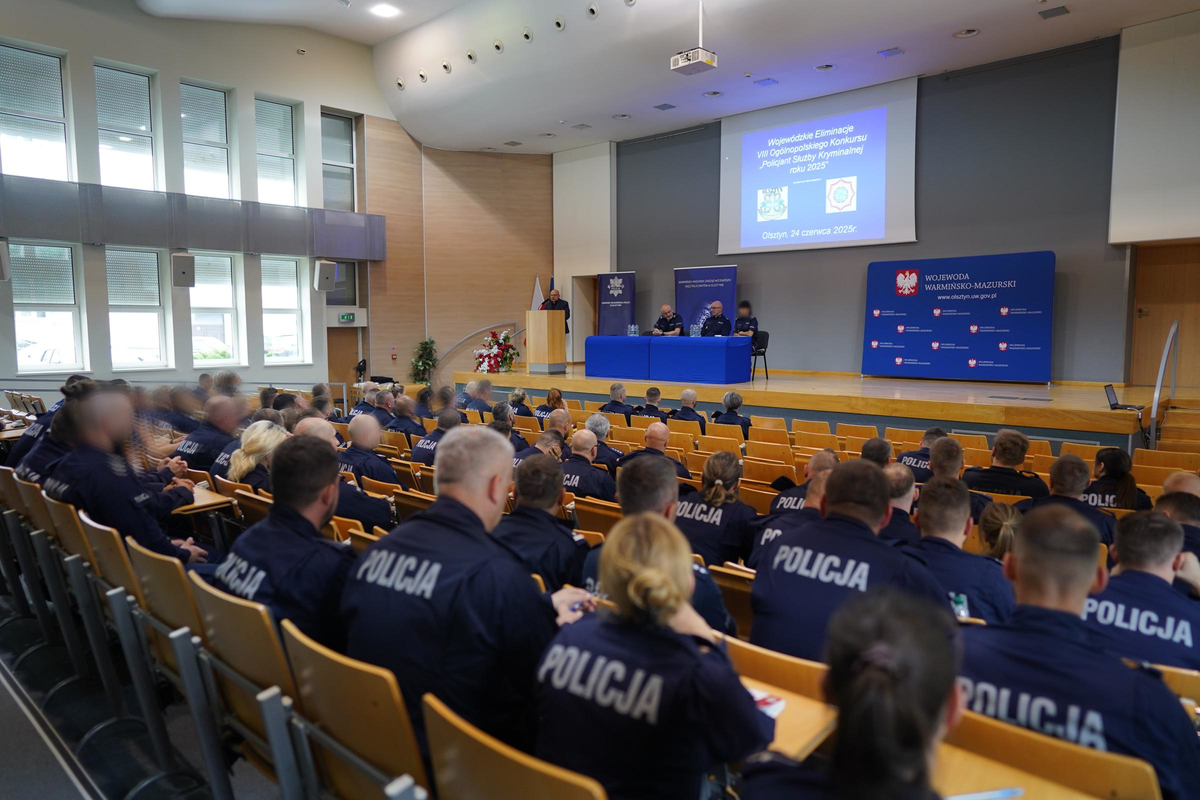 We wtorek (24.06.2025 r.) w Urzędzie Wojewódzkim w Olsztynie spotkali się policjanci służby kryminalnej reprezentujący wszystkie komendy miejskie i powiatowe policji garnizonu warmińsko-mazurskiego. W skład drużyn weszli policjanci dochodzeniowo-śledczy, operacyjno-rozpoznawczy, technicy kryminalistyki oraz policjanci nadzorujący pracę dochodzeniowo-śledczą. Rywalizowali indywidualnie oraz drużynowo w konkurencjach z wiedzy teoretycznej i praktycznej. Przeprowadzone konkurencje pozwoliły wyłonić najlepsze drużyny w garnizonie.