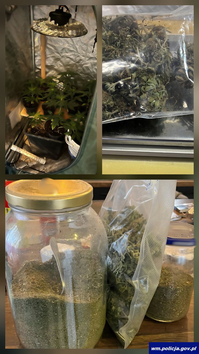 W trakcie czynności i sprawdzania lokalu mundurowi ujawnili uprawę konopi, a także susz rośliny oraz amfetaminę. W ramach dalszych działań funkcjonariuszy wyszło na jaw, że w proceder zamieszany był również drugi mężczyzna. To w jego mieszkaniu policjanci natrafili na namiot wraz z całym sprzętem potrzebnym do uprawy marihuany, a w środku krzewy konopi.