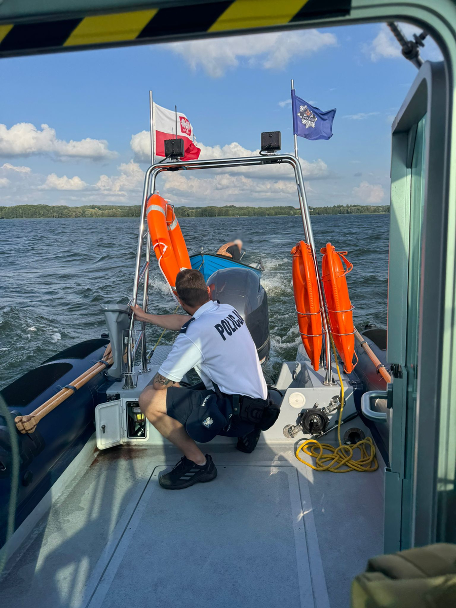 W niedzielę (10.08.2025) służbę patrolową na jeziorze Dadaj pełnili sierż. Patryk Zych i sierż. Robert Bartkowski. Wczesnym wieczorem zauważyli mężczyznę, który stał w łodzi, wymachiwał rękoma i wzywał pomocy.