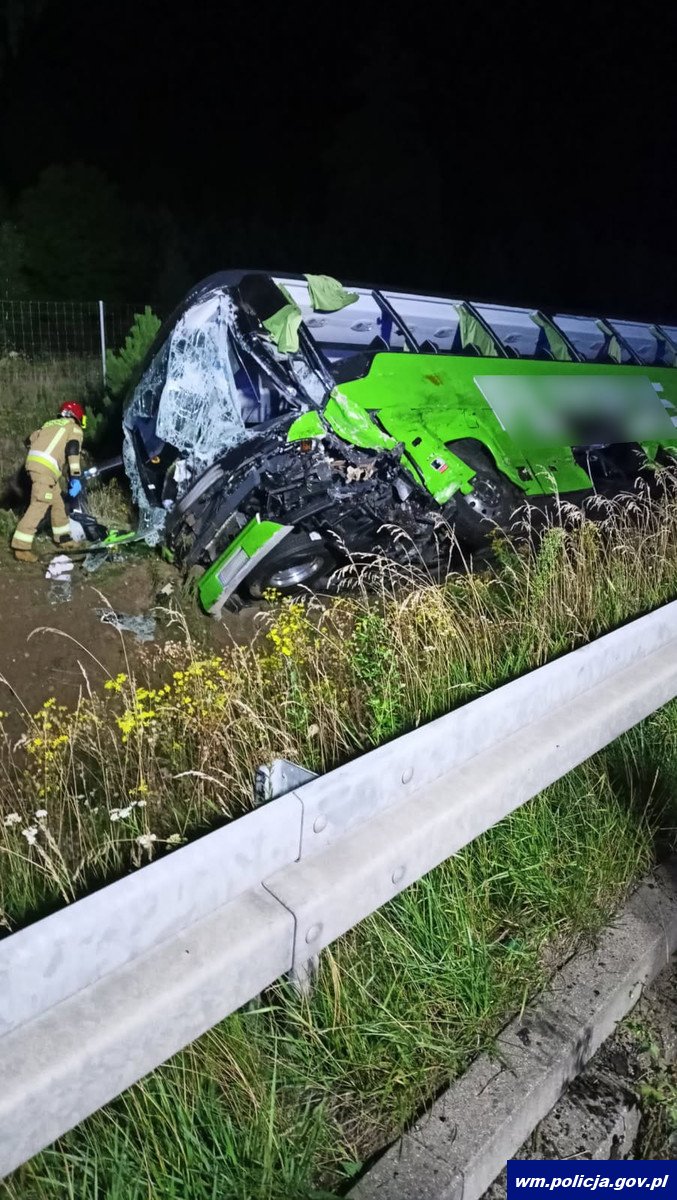 Nidziccy policjanci wyjaśniają okoliczności wypadku do którego doszło we wtorek (19.08.2025 r.) około godz. 21:00 na drodze ekspresowej S7 na wysokości miejscowości Powierz. W wypadku brały udział trzy pojazdy - ze wstępnych ustaleń wyniki, że w pojeździe ciężarowym przewożącym zboże, jadącym w kierunku Gdańska doszło do uszkodzenia opony w wyniku czego 27-letni kierujący stracił nad nim panowanie gwałtownie skręcając w lewo, w tym samym kierunku poruszał się pojazd osobowy, który został uderzony przez ciężarówkę, kierującemu pojazdem Tesla nic się nie stało, następnie ciężarówka pokonała barierę rozdzielającą pasy ruchu i przejechała na pas prowadzący do Warszawy, gdzie zderzył się czołowo w autobusem jadącym w kierunku Warszawy. W autobusie znajdowało się 8 pasażerów oraz kierowca, a w zdarzeniu brało udział łącznie 11 osób. Do szpitala z obrażeniami trafiło 5 pasażerów autobusu jego kierowca oraz kierowca pojazdu ciężarowego.