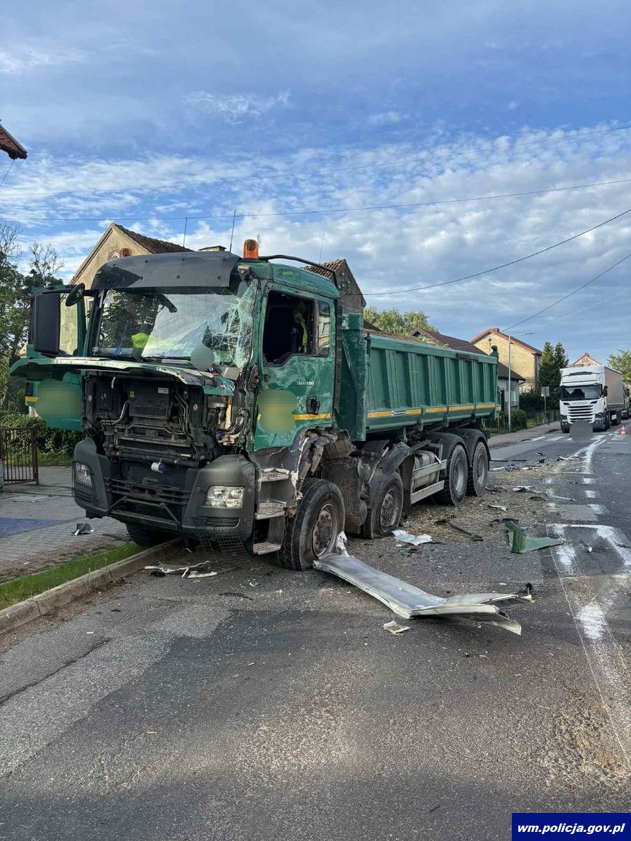 Na miejsce natychmiast skierowani zostali policjanci. Ze wstępnych ustaleń wynika, że 57-letni kierowca samochodu ciężarowego marki Scania z naczepą, jadąc w kierunku miejscowości Nawiady, z nieustalonych przyczyn, zjechał na przeciwległy pas ruchu i zderzył się z jadącym z naprzeciwka samochodem ciężarowym marki MAN, którym kierował 29-letni mężczyzna. Następnie pojazd scania zjechał z drogi i uderzył w ścianę budynku.