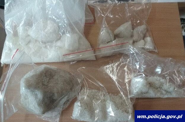 Policjanci interweniowali w jednym z mieszkań w Ełku po zgłoszeniu dotyczącym zagrożenia wobec kobiety przebywającej wewnątrz lokalu. Policjanci nie potwierdzili żadnego zagrożenia - kobieta nie potrzebowała pomocy. Jednak w trakcie przeprowadzania interwencji w mieszkaniu policjanci spostrzegli na barku domowym rozsypany biały proszek. Okazało się, że to narkotyki. Kolejne porcje narkotyków w tym mieszkaniu przechowane były w słoiku, w pudełku po ciastkach i w worku ukrytym w zamrażalce.