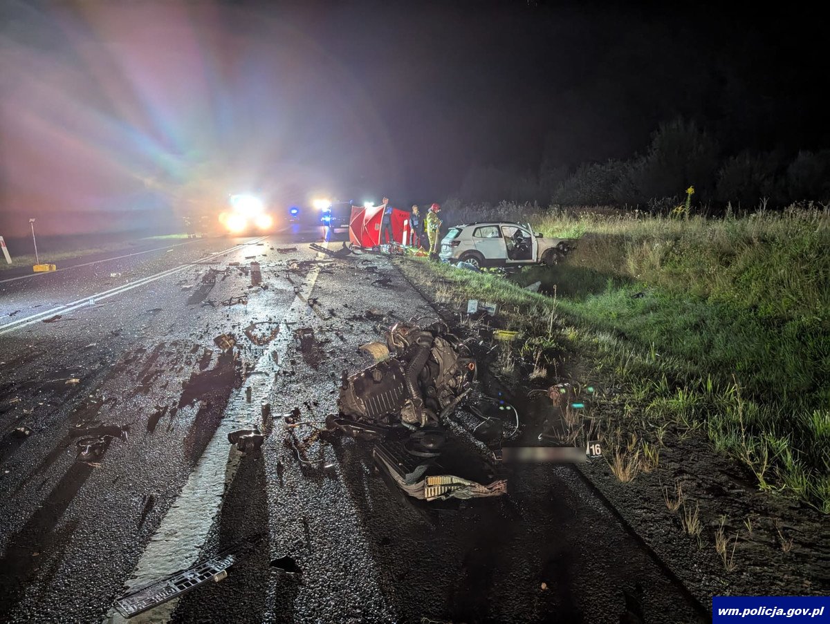 Do zdarzenia doszło w poniedziałek (01.09.2025 r.) około godz. 19:00 na dk 16 w pobliżu m. Nowe Marcinkowo. Według wstępnych ustaleń kierujący audi 19-latek jadąc w kierunku Biskupca z nieznanych na chwilę obecną przyczyn zjechał na przeciwległy pas ruchu i zderzył się czołowo z volkswagenem, którym kierował 51- latek. Niestety, w wyniku zderzenia obaj kierowcy zginęli na miejscu. Mężczyźni jechali sami.