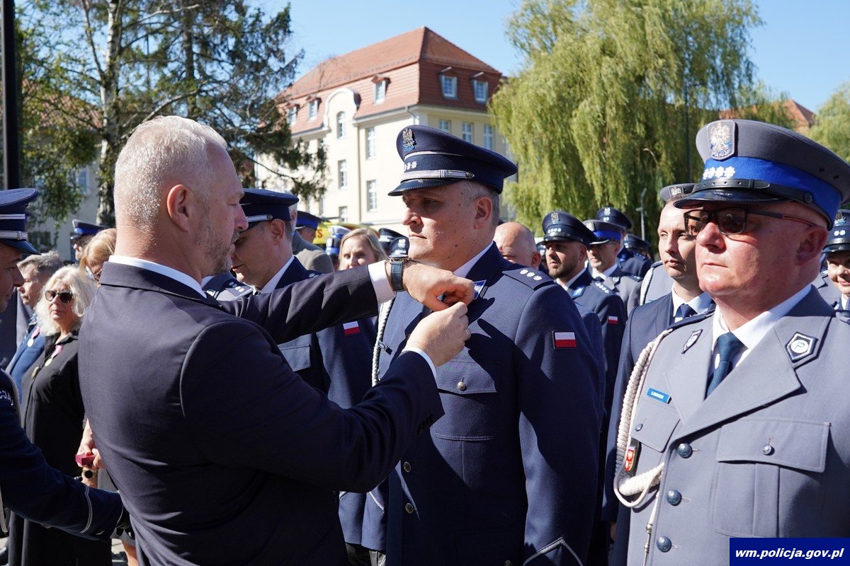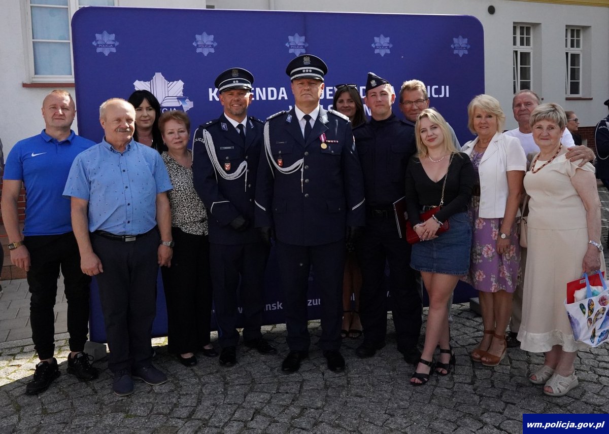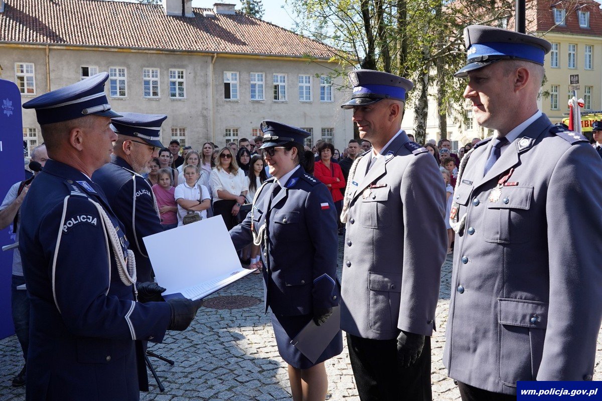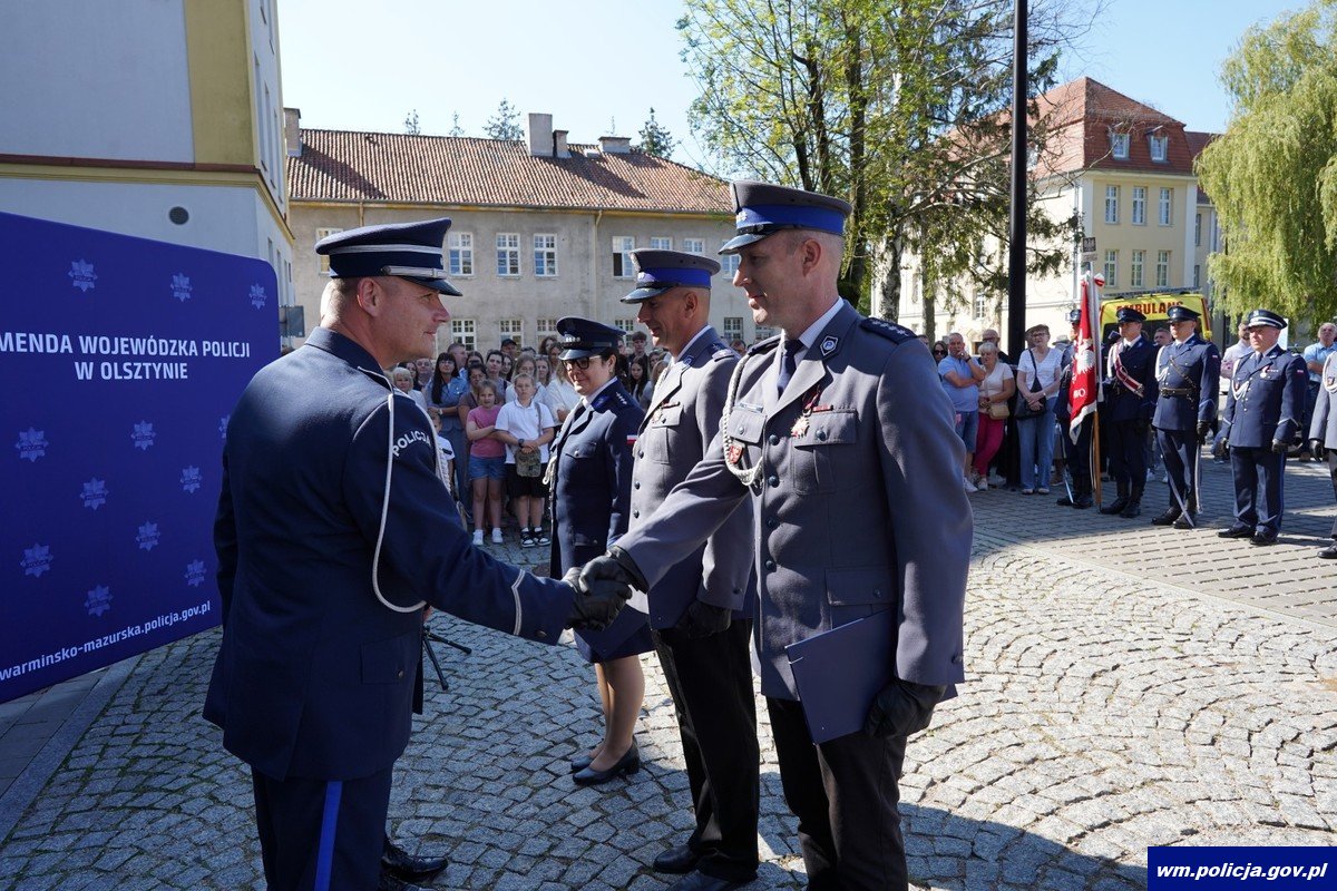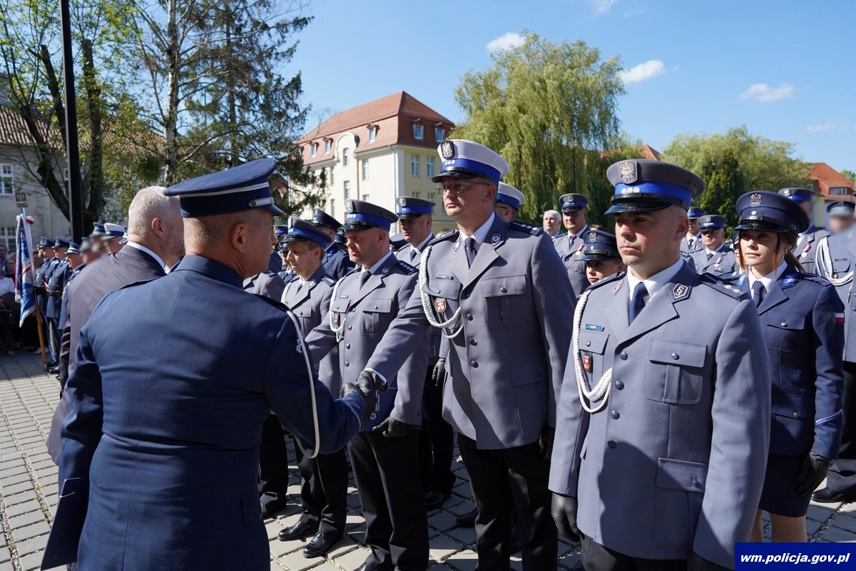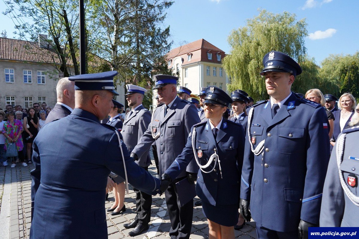 Poniedziałkowe ślubowanie było również okazją do wręczenia wyróżnień policjantom i pracownikom cywilnym policji za długoletnią służbę oraz aktów mianowania na wyższe stopnie policyjne. Wyróżnionym i awansowanym osobiście pogratulowali Komendant Wojewódzki Policji w Olsztynie w towarzystwie Wojewody Warmińsko-Mazurskiego.