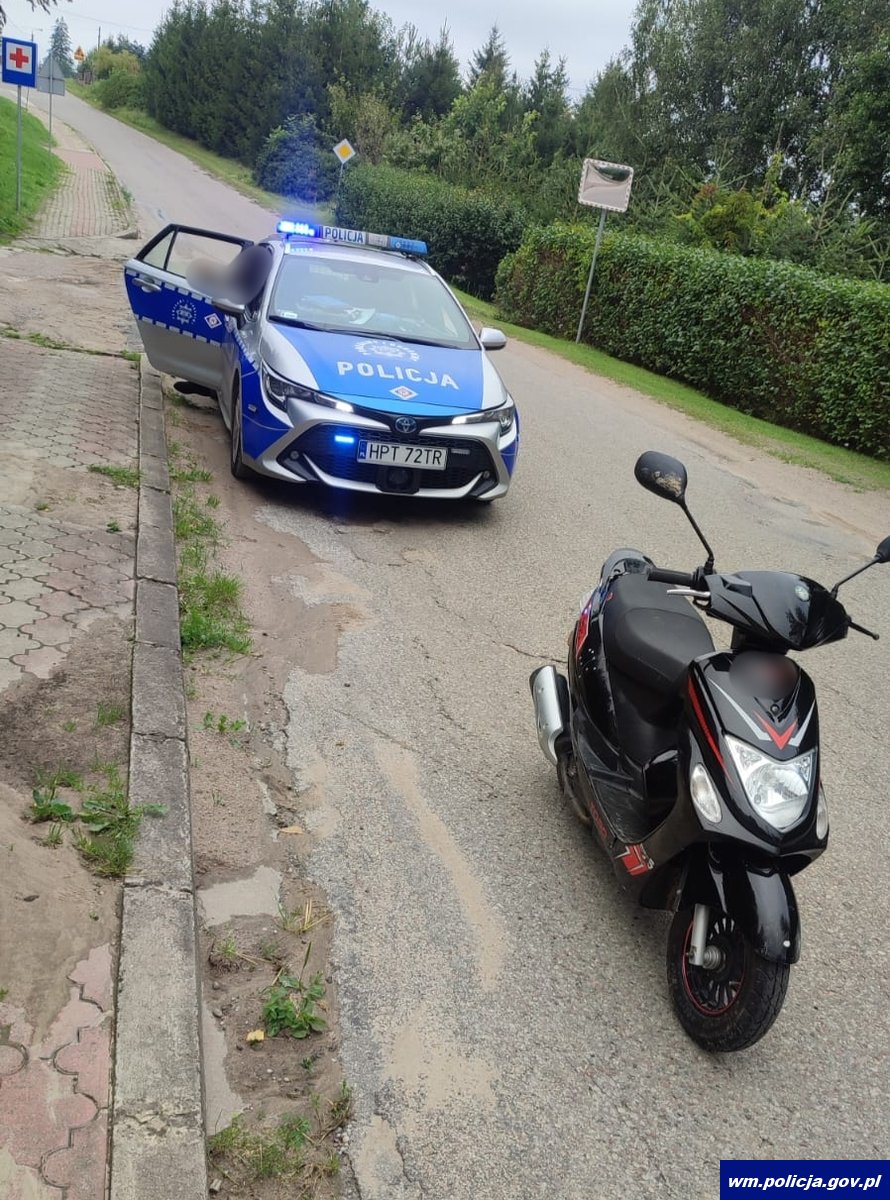 Do zdarzenia doszło w niedzielę (07.09.2025 r.) o godz. 12:00 w Dubeninkach. Policjanci podczas patrolu zauważyli motorower marki Znen Vivo, którego kierujący miał problemy z utrzymaniem prawidłowego toru jazdy.