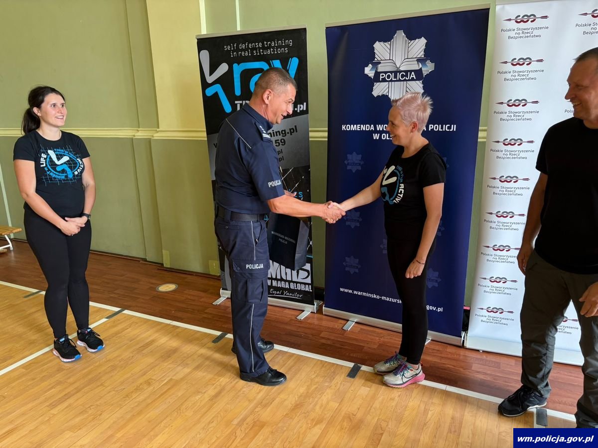 Na terenie Gwardii KWP w Olsztynie odbyło się szkolenie „Przygotowanie mentalne oraz techniki i taktyki w procedurach bezpieczeństwa osobistego w systemie Krav Maga”. Wydarzenie, skierowane do policjantek i pracownic cywilnych KWP w Olsztynie oraz KMP w Olsztynie, wpisało się w obchody jubileuszu 100-lecia kobiet w Policji.