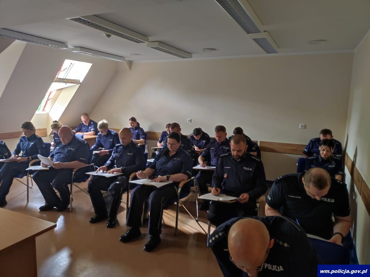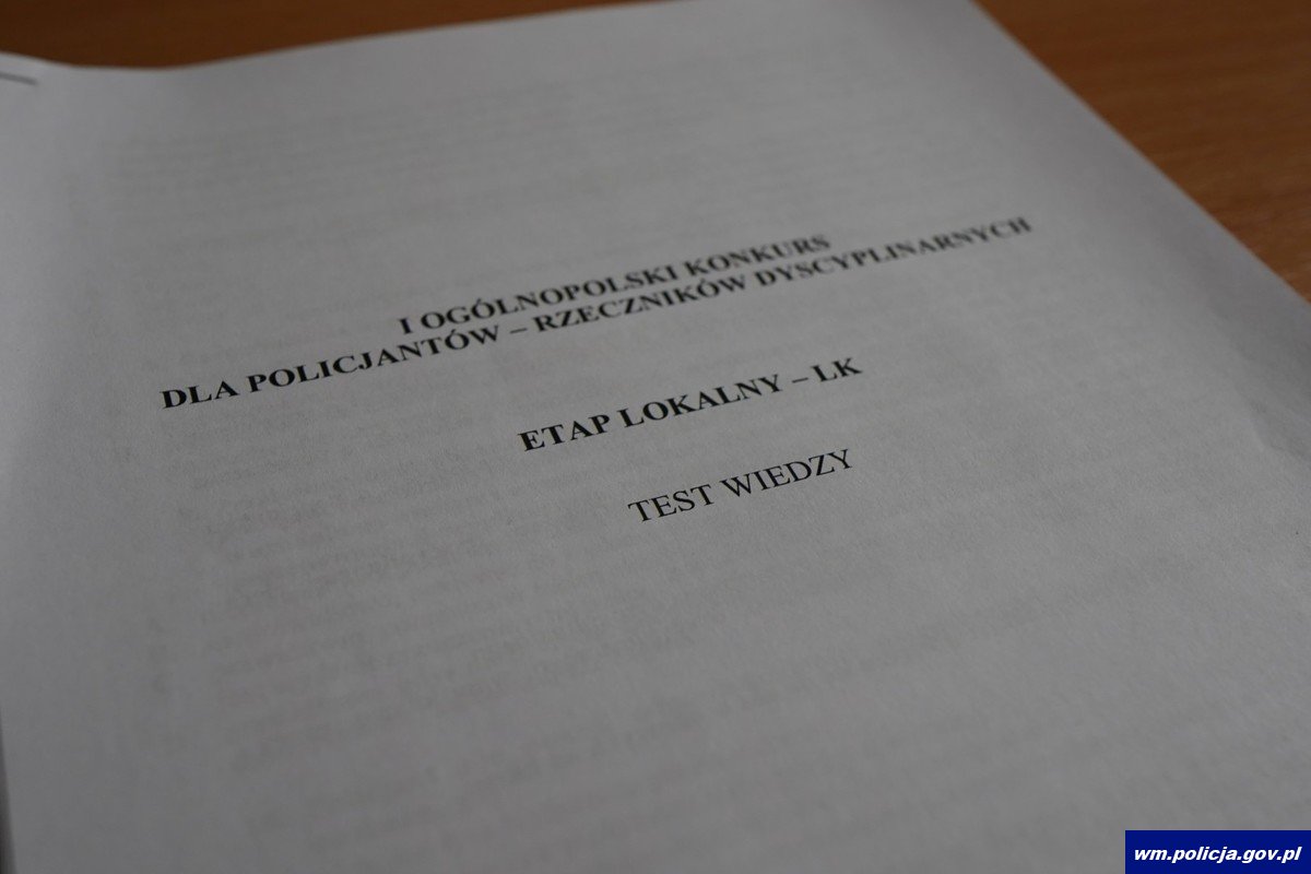 Uczestnicy zmierzyli się z testem składającym się z 40 pytań dotyczących znajomości przepisów prawa regulujących zagadnienia odpowiedzialności dyscyplinarnej policjantów, w tym uprawnienia i obowiązki rzecznika dyscyplinarnego.