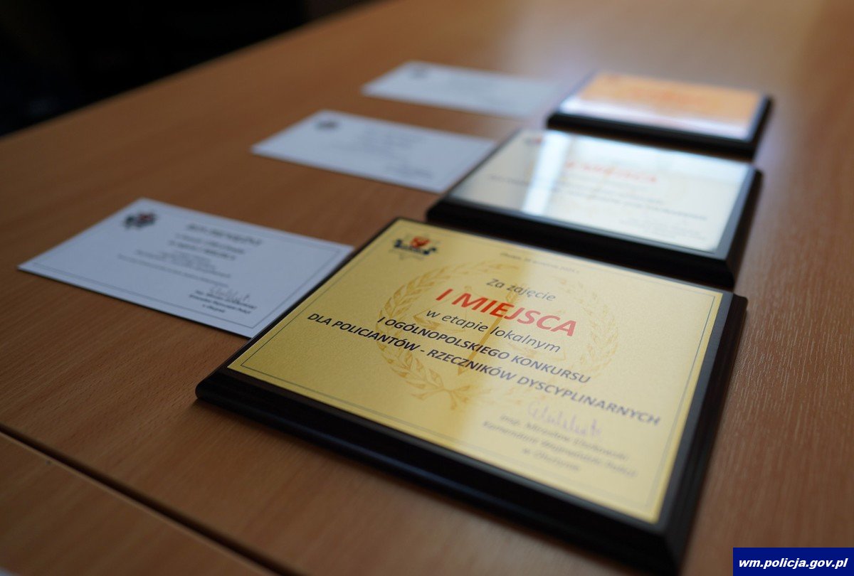 W komendzie Wojewódzkiej Policji w Olsztynie zakończyły się wojewódzkie eliminacje do „I Ogólnopolskiego konkursu dla policjantów – rzeczników dyscyplinarnych”. W rywalizacji wzięli udział 19 przedstawicieli z garnizonu warmińsko-mazurskiego, którzy na co dzień wykonują zadania związane z prowadzeniem postępowań dyscyplinarnych. Zwycięzcom zmagań osobiście pogratulował i wręczył nagrody insp. Jarosław Brzozowski I Zastępca Komendanta Wojewódzkiego Policji w Olsztynie.