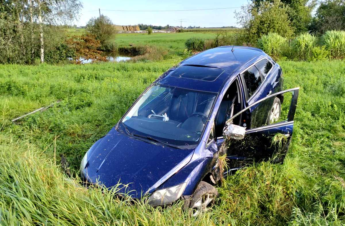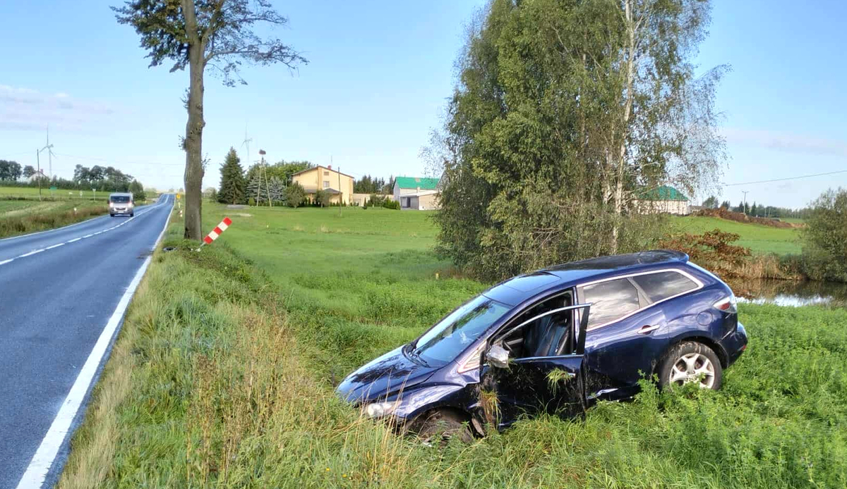 Do pierwszego poważnie wyglądającego zdarzenia doszło we wtorek (16.09.2025 r.) kilka minut po godzinie 7:00. Policjanci będący na miejscu ustalili, że 34-latka kierująca fiatem podjęła manewr wyprzedzania zespołu pojazdów wraz z naczepą. W trakcie wyprzedzania przez kierującą mazdą, która, aby uniknąć zderzenia, zjechała na lewe pobocze, następnie straciła panowanie nad pojazdem, zjechała na prawy pas ruchu, doprowadzając do zderzenia bocznego z naczepą, po czym ponownie zjechała na lewe pobocze, gdzie najechała na znak drogowy i zatrzymała się w przydrożnym rowie. Kierująca fiatem za stworzenie zagrożenia w ruchu drogowym została ukarana mandatem.