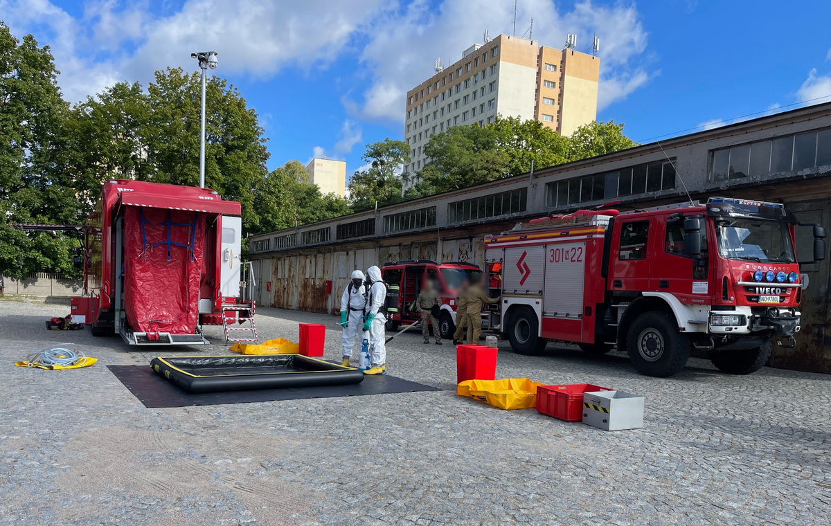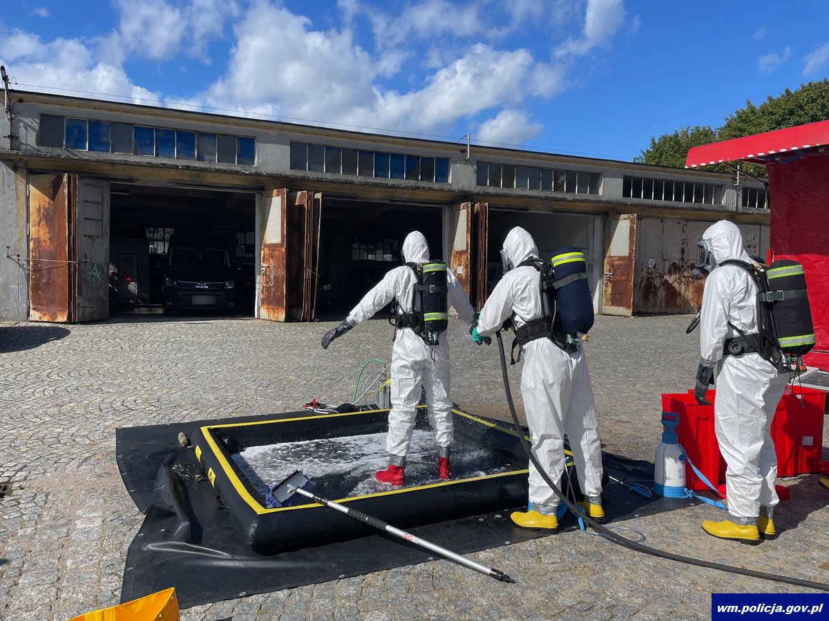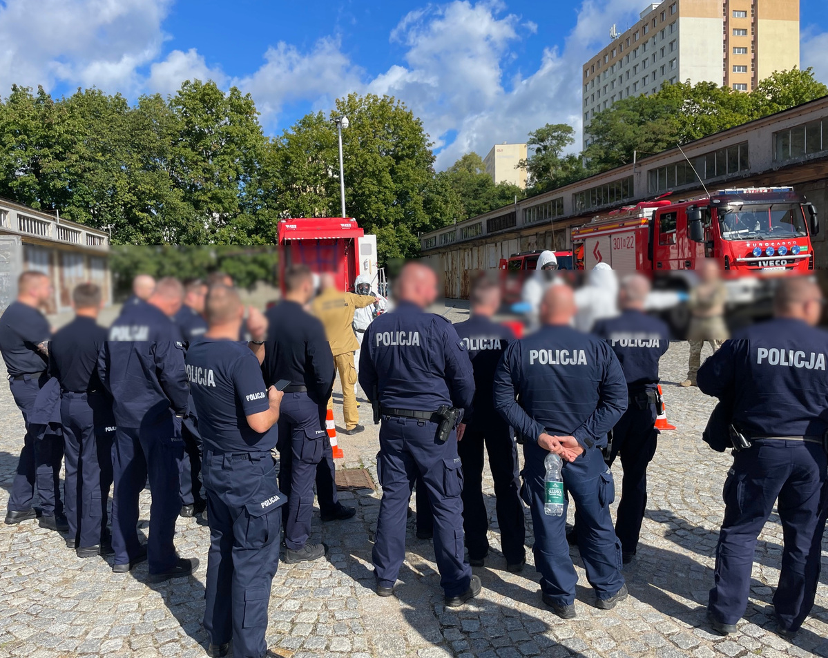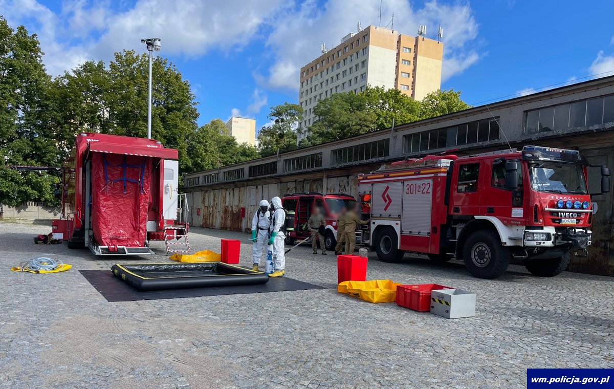 Na terenie obiektów Komendy Wojewódzkiej Policji w Olsztynie odbyło się specjalistyczne szkolenie z zakresu zagrożeń CBRNE. Ćwiczenia przeprowadzono we współpracy z Komendą Miejską Państwowej Straży Pożarnej oraz Samodzielnym Pododdziałem Kontrterrorystycznym Policji.
