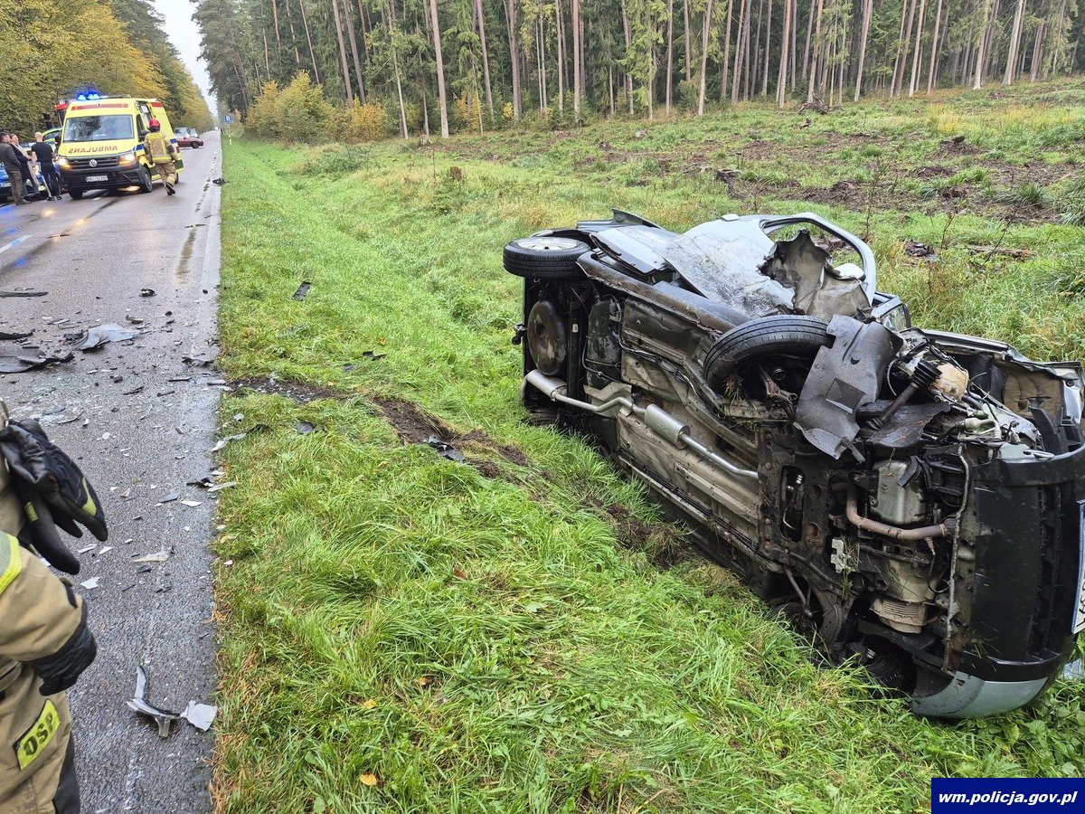 Tymczasem w sobotę (11.10.2025 r.) po północy na jednej z dróg w gminie Iława 41-latek kierującemu volkswagenem na łuku drogi wybiegło dzikie zwierzę, kierujący chcąc ominąć zwierzę, zjechał na prawe pobocze, wywracając pojazd. Na szczęście nikomu nic poważnego się nie stało.