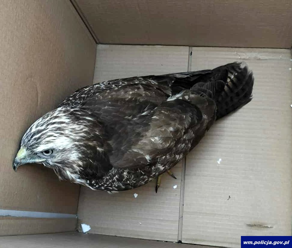 We wtorek (21.10.2025 r.) kilka minut po godzinie 14:00 oficer dyżurny policji w Iławie został poinformowany o rannym ptaku, którego znaleźli olsztyńscy policjanci wykonujący czynności służbowe na terenie gminy Kisielice. Funkcjonariusze z Posterunku Policji z Kisielic pojechali na miejsce. Okazało się, że jest to ranny myszołów. Funkcjonariusze przy pomocy koca oraz kartonu zabezpieczyli rannego ptaka mającego problem ze wzbiciem się w górę, gdyż prawdopodobnie miał uszkodzone skrzydło. Następnie policjanci zawieźli go do Ośrodka Rehabilitacji Ptaków Dzikich w Bukwałdzie, gdzie pozostał pod troskliwą i fachową opieką.