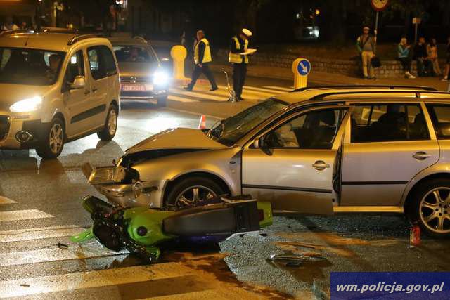 Olsztyn: Wypadek z udziałem motocyklisty. Kierowca nie miał uprawnień, a pojazd nie był dopuszczony do ruchu