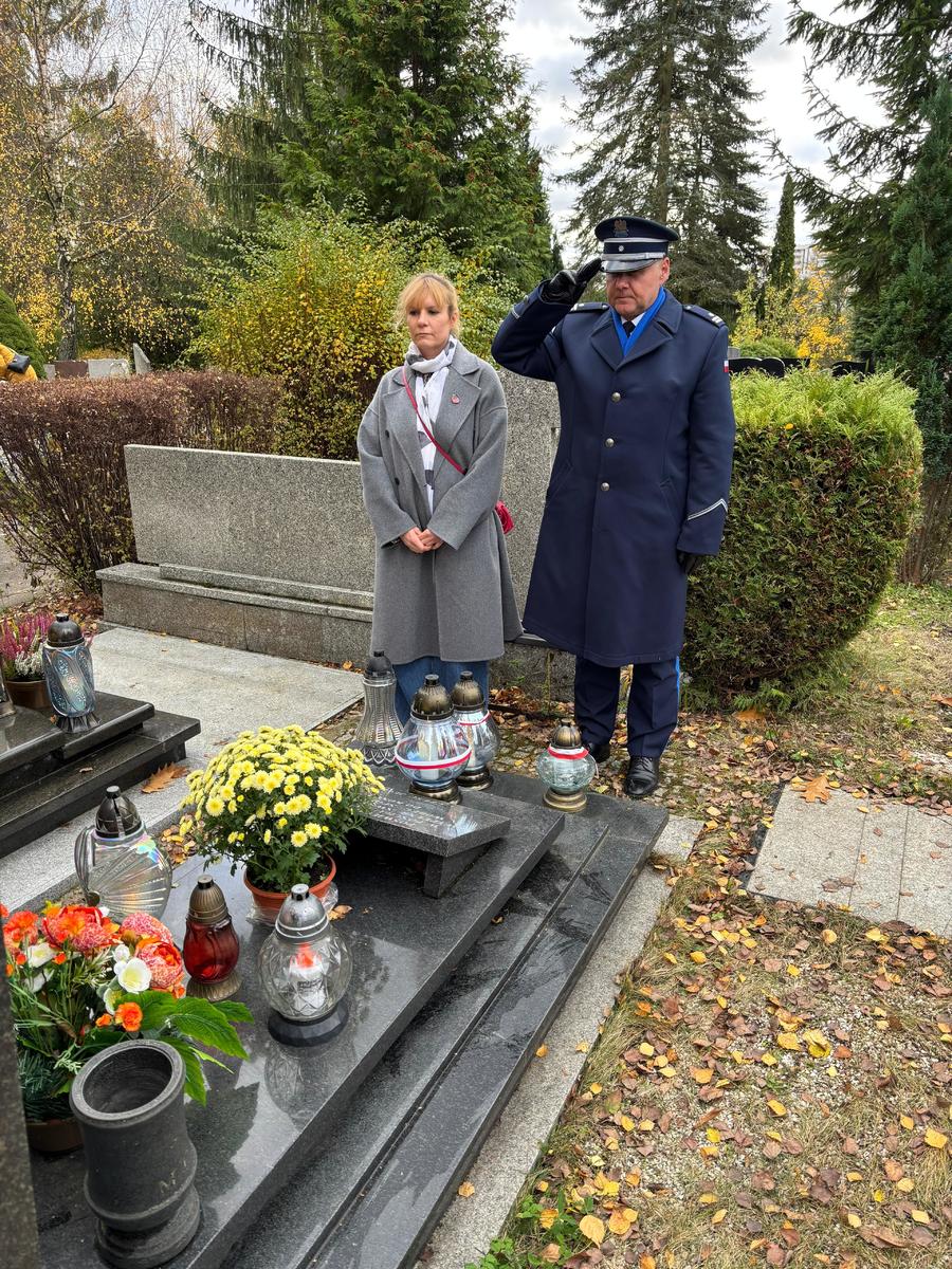 W piątek (31.10.2025) Komendant Wojewódzki Policji w Olsztynie insp. Mirosław Elszkowski wraz ze swoim Zastępcą insp. Radosławem Drachem, Jolantą Rakiel-Sugier – Wiceprzewodniczącą Warmińsko-Mazurskiego Zarządu Wojewódzkiego NSZZ Policjantów w Olsztynie oraz Rafałem Bieleckim – Przewodniczący Rady Wojewódzkiej – Organizacja Województwa Warmińsko-Mazurskiego Związek Zawodowy Policyjna Solidarność zapalili znicz pod tablicą upamiętniającą poległych policjantów.