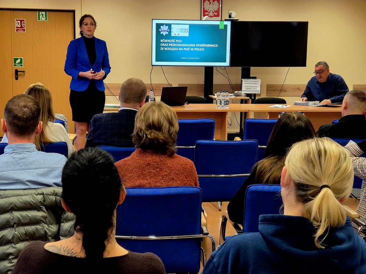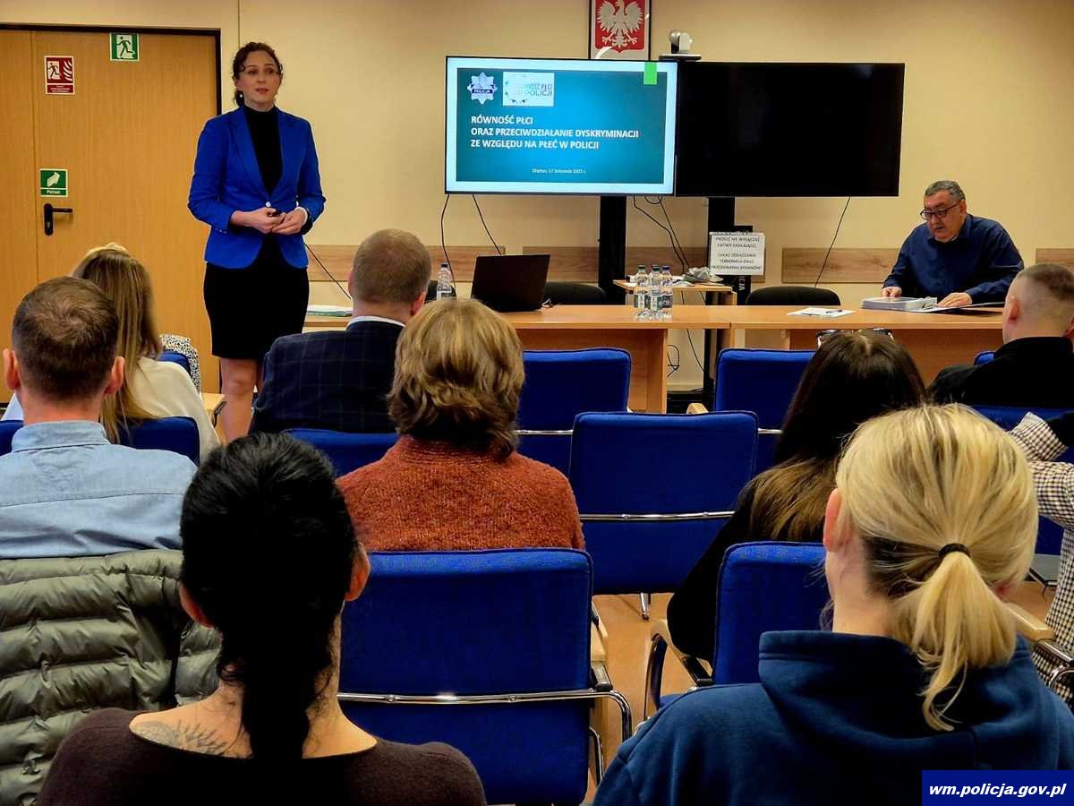 W czwartek (17.11.2025 r.) w Olsztynie Zespół do spraw Ochrony Praw Człowieka KWP w Olsztynie we współpracy z Fundacją Feminoteka zorganizował i przeprowadził przedsięwzięcie edukacyjne, które miało na celu wzmocnienie wiedzy oraz umiejętności w zakresie równego traktowania, przeciwdziałania dyskryminacji ze względu na płeć w Policji oraz reagowania na molestowanie seksualne w miejscach publicznych.